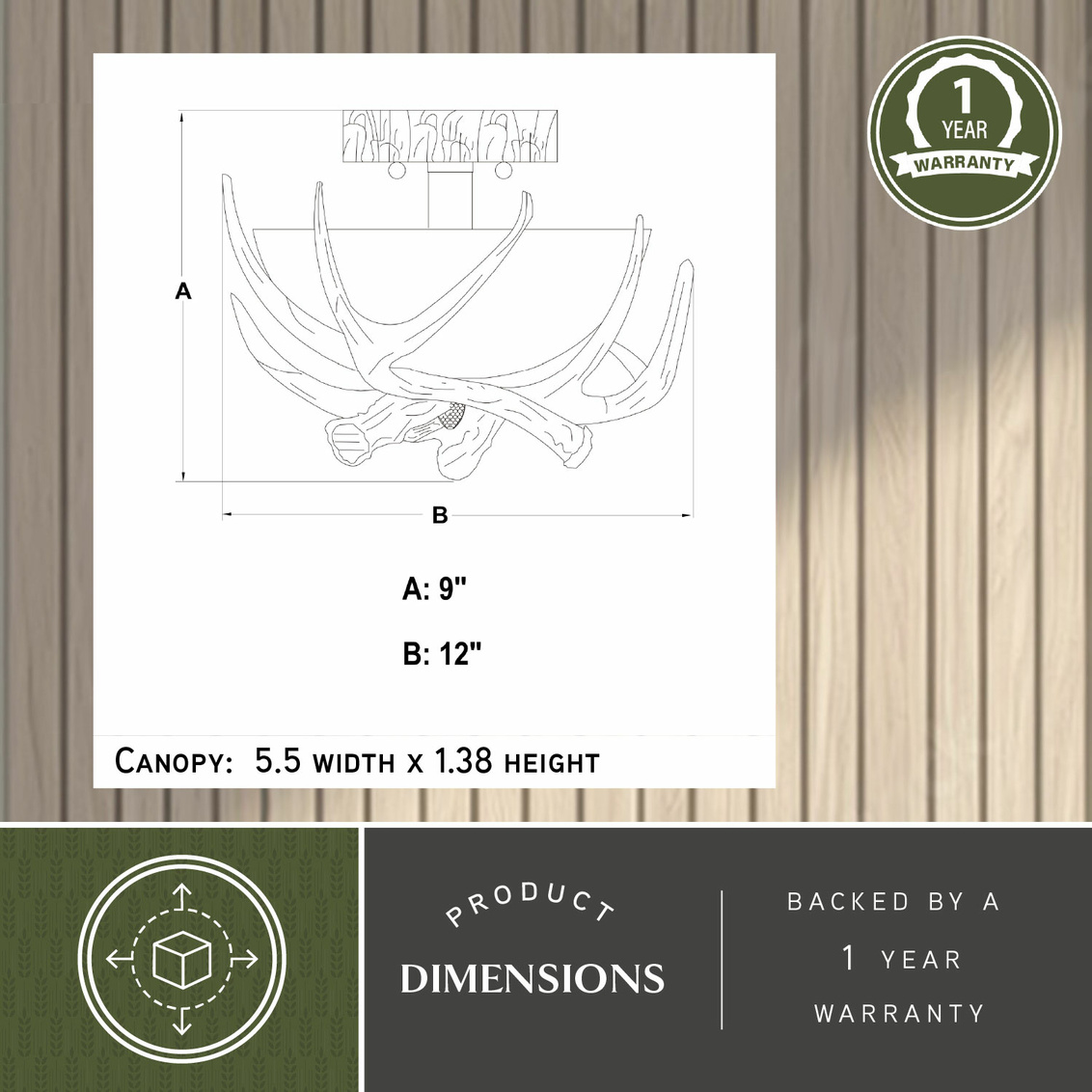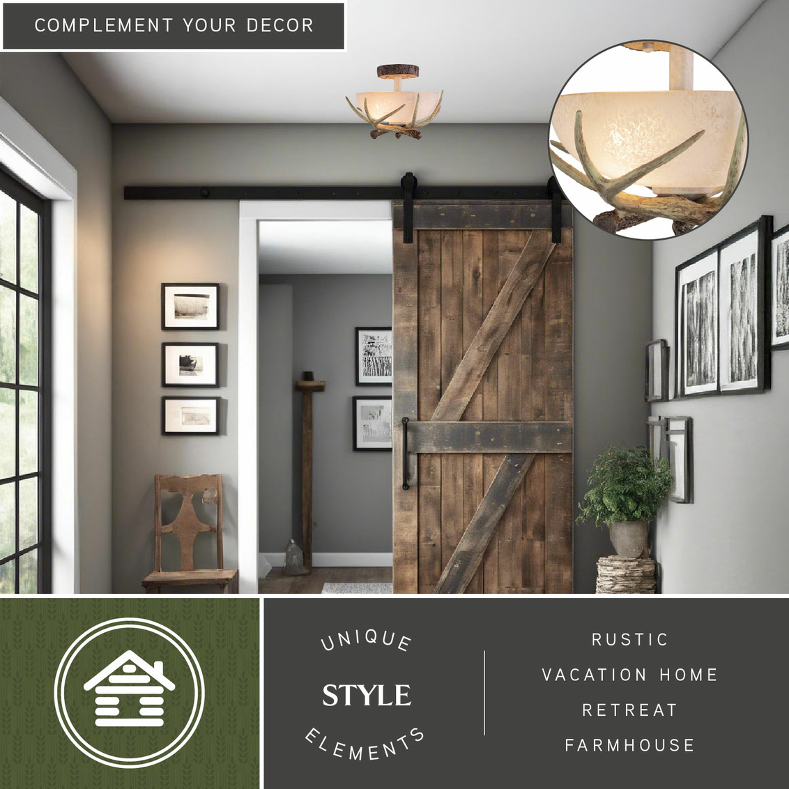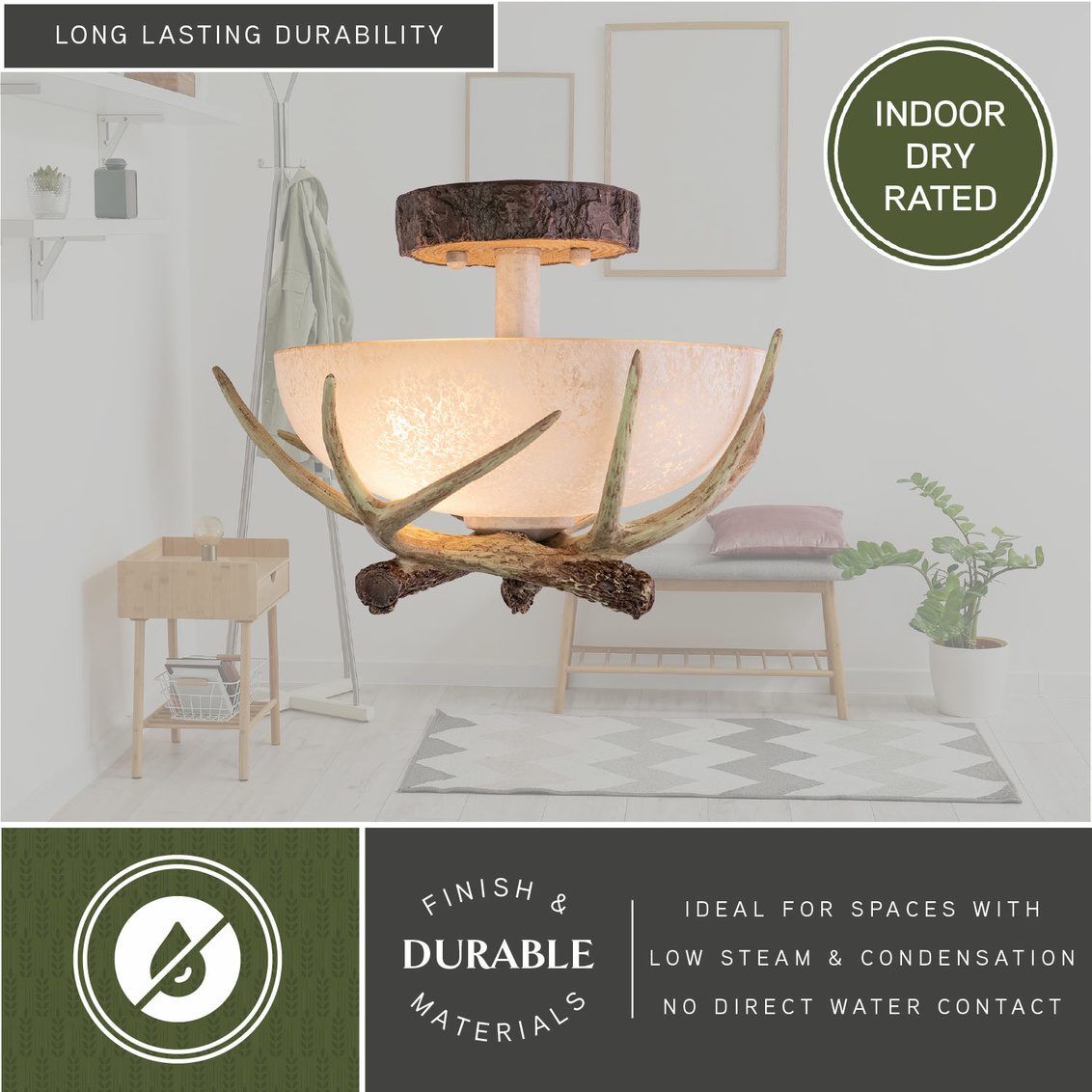 Lodge 12-in Antler Semi Flush Ceiling Light Noachian Stone
