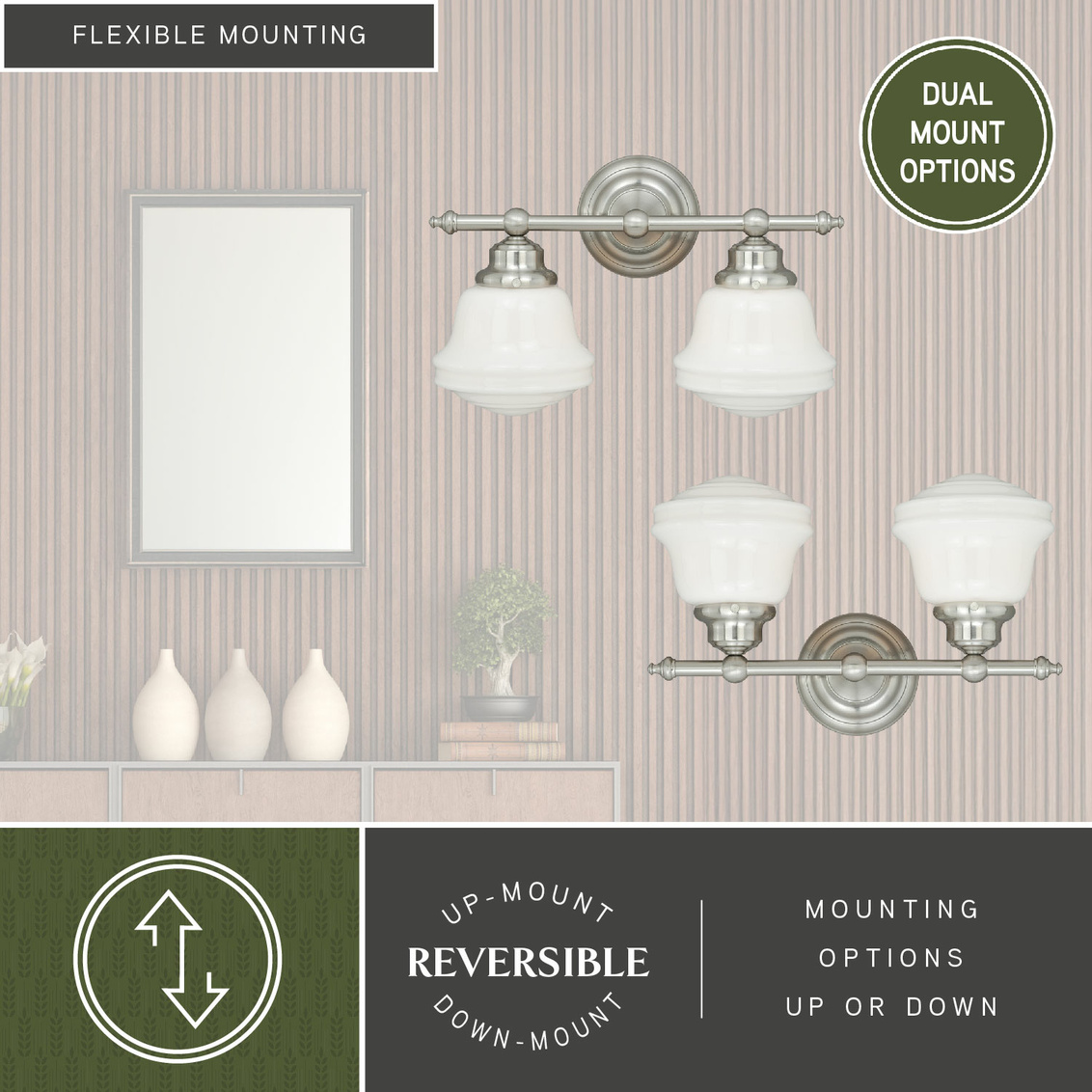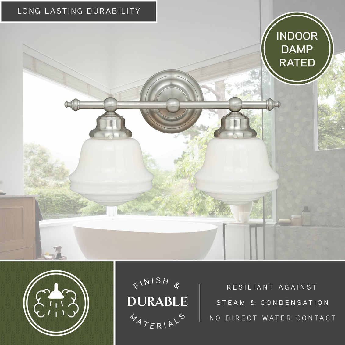 - Huntley 2L Vanity Milk Glass Satin Nickel