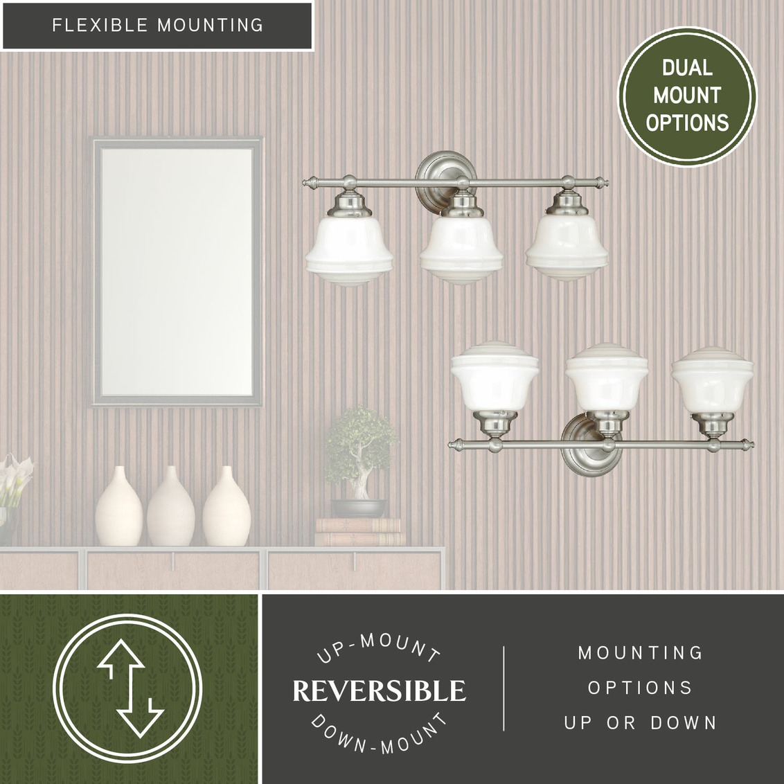 - Mounting: Reversible