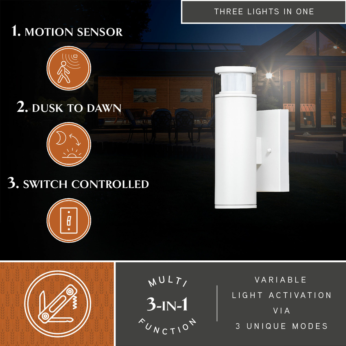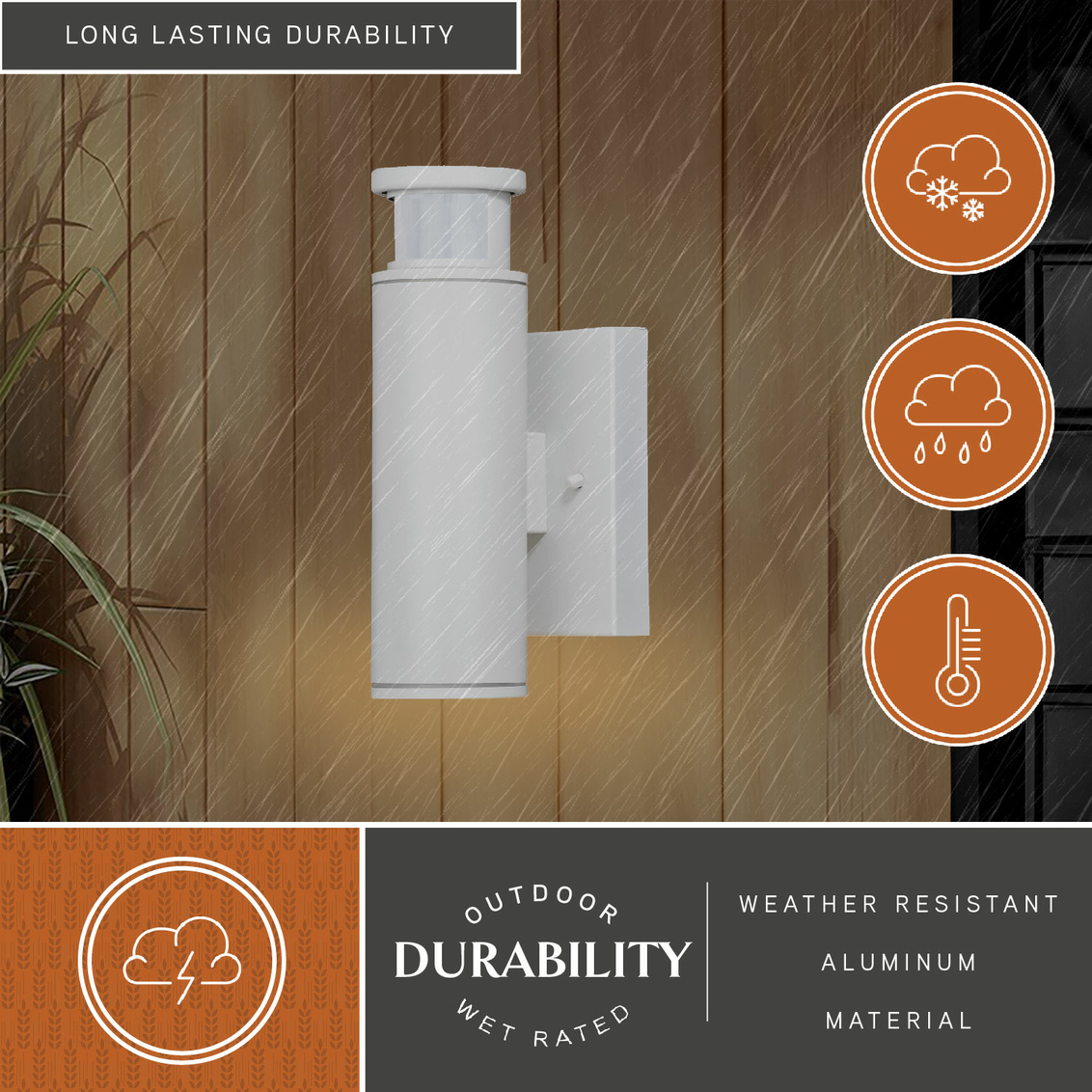 The cylindrical contemporary shape of the Chiasso LED collection adds a modern look to your home’s exterior. Dualux dual-level outdoor security lighting is designed to fit your lifestyle and enhance the beauty, safety, and usability of your home's exterior areas. Enjoy the comfort and convenience of continuous bright illumination during the early evening hours with automatic dimming late at night to provide soft, ambient illumination until dawn. Rest assured knowing that whenever motion is detected, on-demand bright illumination will be triggered to keep your property safe and secure. You get convenience, security, and efficiency with Dualux outdoor light fixtures. An integrated LED light source provides energy saving, no bulb changing convenience, low maintenance and long lasting performance.