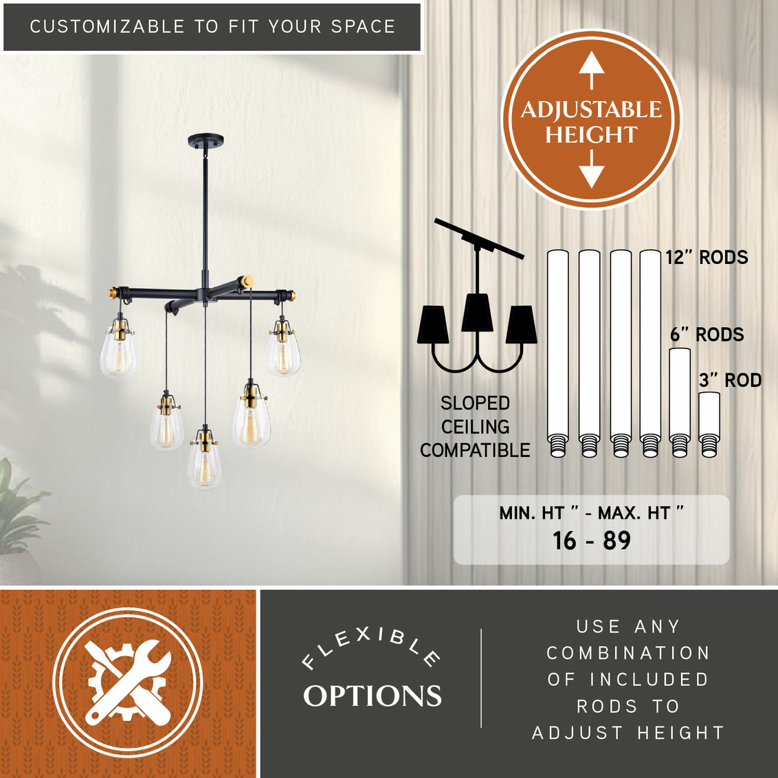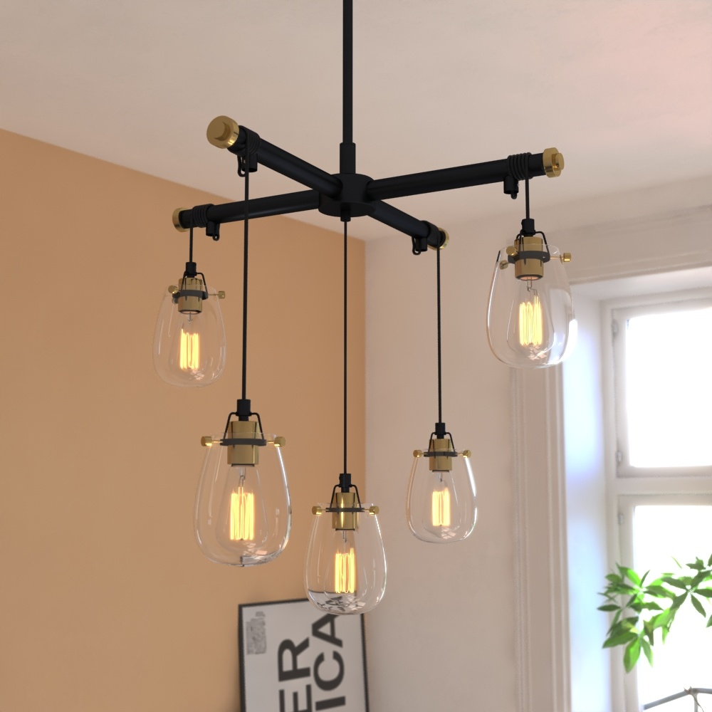 Kassidy 5L Adjustable Chandelier Black and Natural Brass