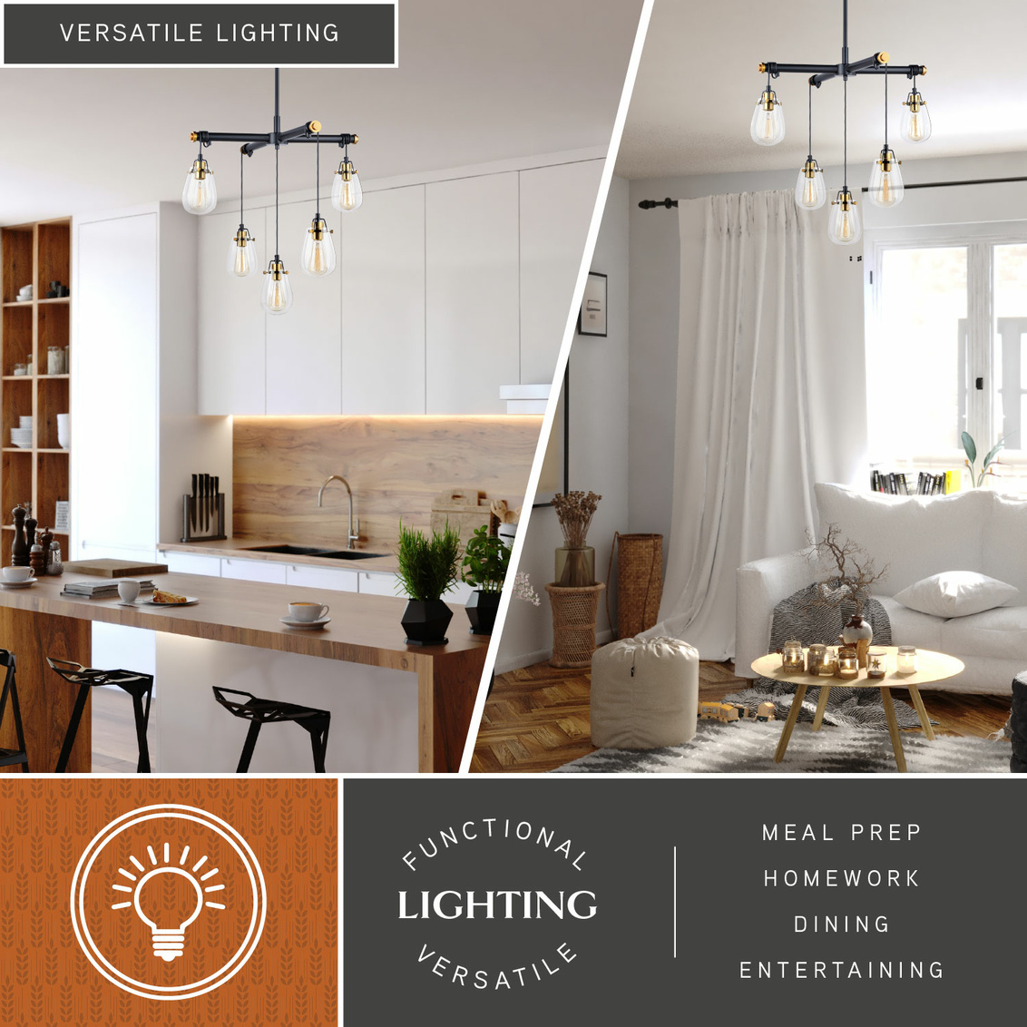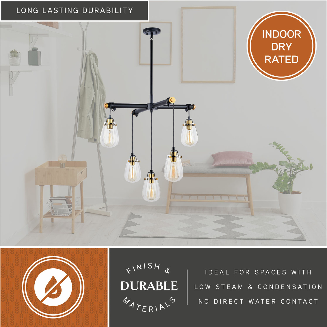 The striking Kassidy collection is a throwback to an industrial time. The distinct black linear lines are punctuated with accents in a natural brass finish. Gently curved teardrop glass shades softly offset the statement this collection makes. Adjustable light heights and lengths enable customizing the look based on your setting. Combine that with vintage Edison style filament bulbs to complete the look.