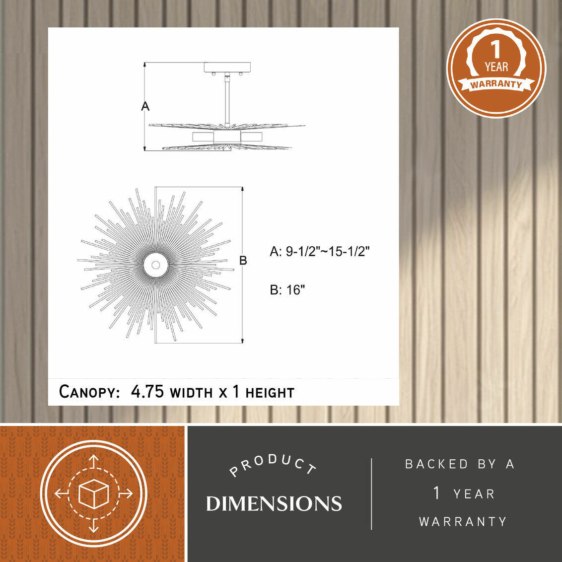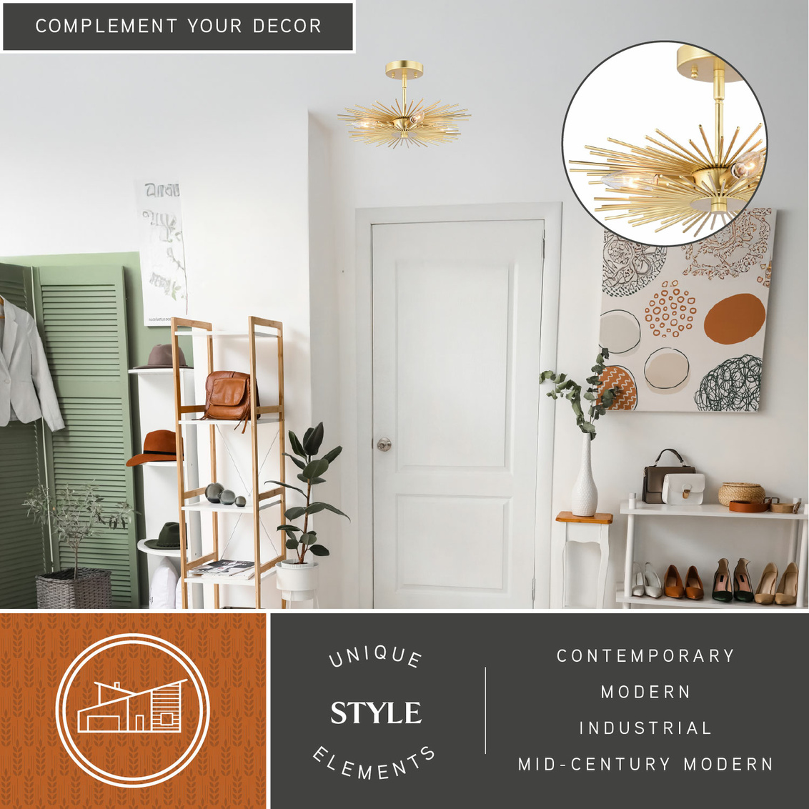 The Nikko collection is bursting with excitement and warmth. Gold finished rods playfully radiate from the central band like rays from the sun. This mid-century modern look is a flirty throwback to a simpler age. With its personality and charm, the Nikko collection feels like a familiar friend, sure to make a statement in any entryway, hallway, or bedroom.