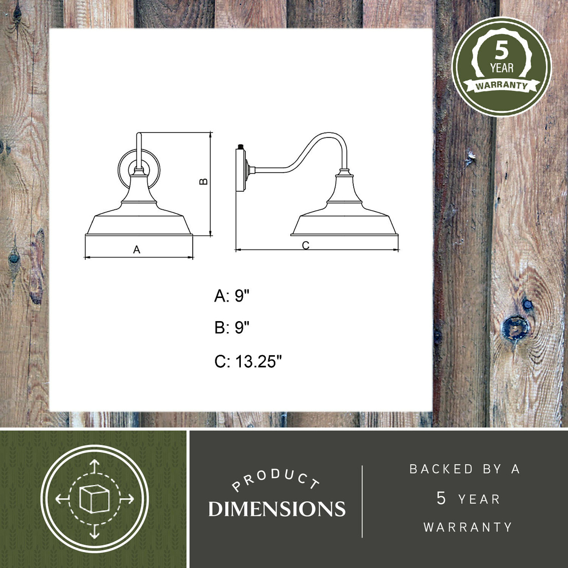 Utility and style come together in the Dorado collection. This farmhouse inspired duo is a versatile collection where light is the hero. Large open shades offer the maximum light in your outdoor spaces (and indoor too). The Dorado is dark sky compliant and will add a touch of style and flair throughout your home. It has a built-in dusk to dawn photocell that automatically turns the light on at dusk and turns it off at dawn, saving energy during daylight hours. Mount these barn lights on your porch, entryway, or garage and experience this stylish look for yourself.