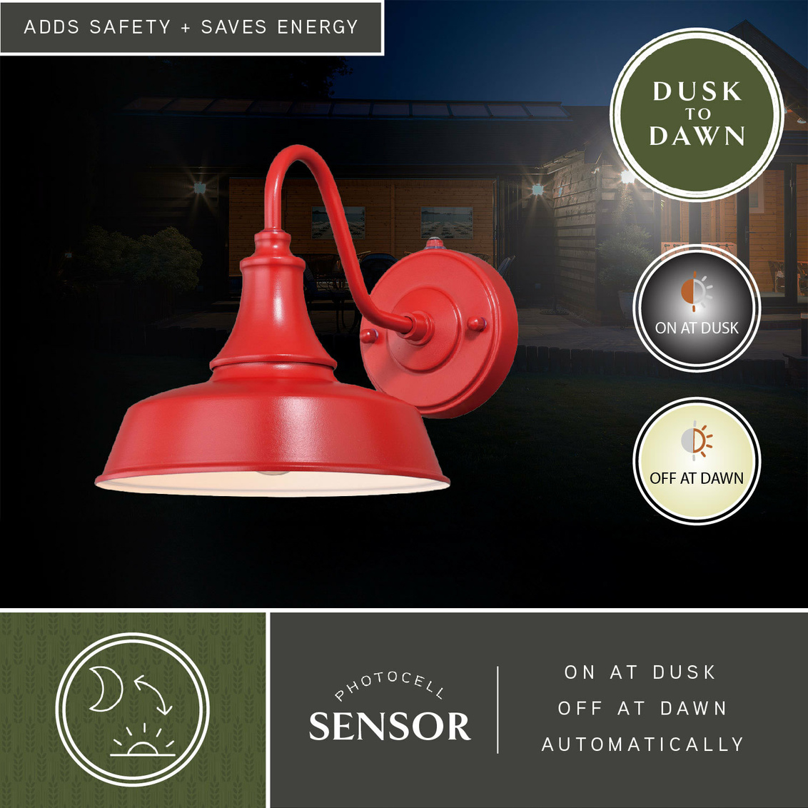 Utility and style come together in the Dorado collection. This farmhouse inspired duo is a versatile collection where light is the hero. Large open shades offer the maximum light in your outdoor spaces (and indoor too). The Dorado is dark sky compliant and will add a touch of style and flair throughout your home. It has a built-in dusk to dawn photocell that automatically turns the light on at dusk and turns it off at dawn, saving energy during daylight hours. Mount these barn lights on your porch, entryway, or garage and experience this stylish look for yourself.