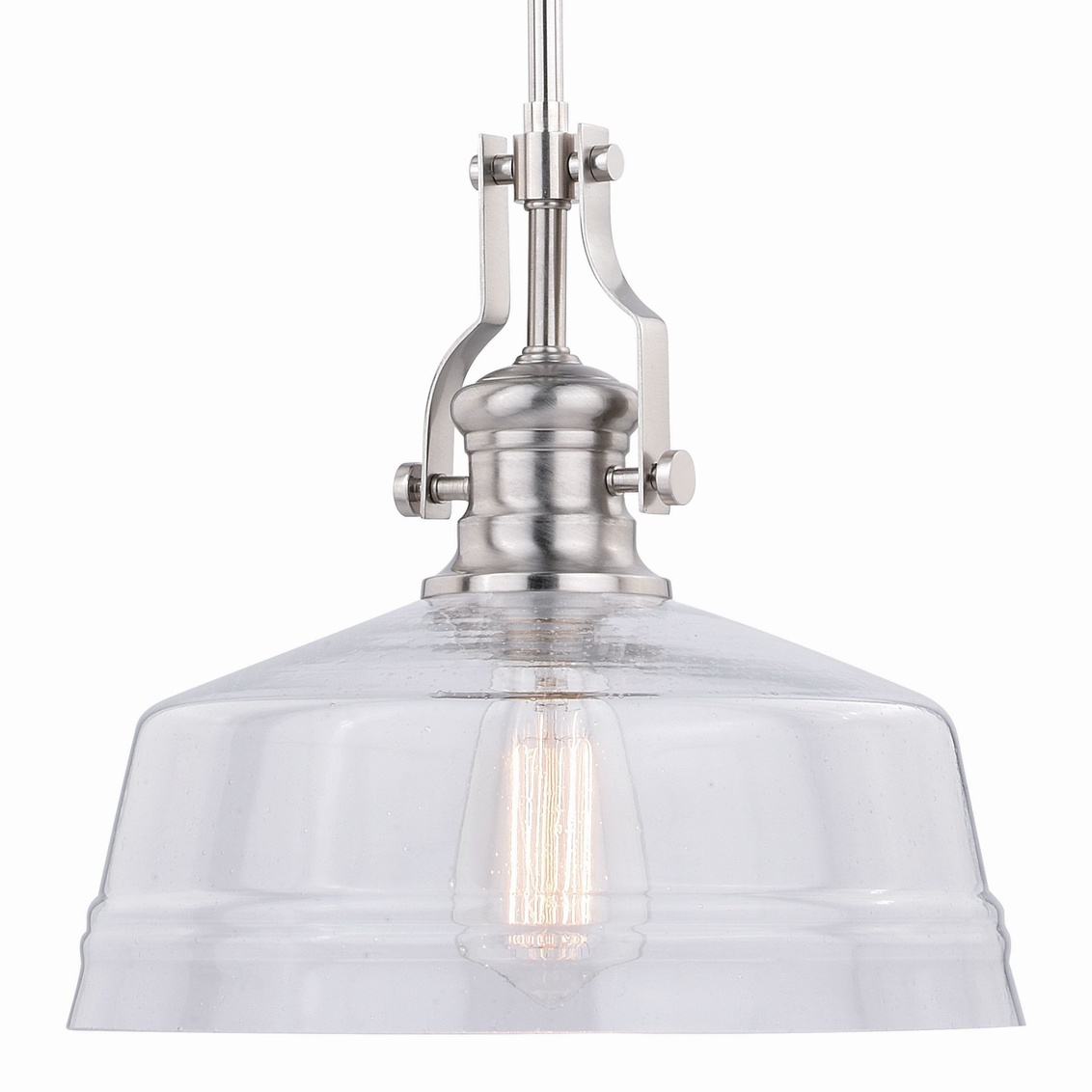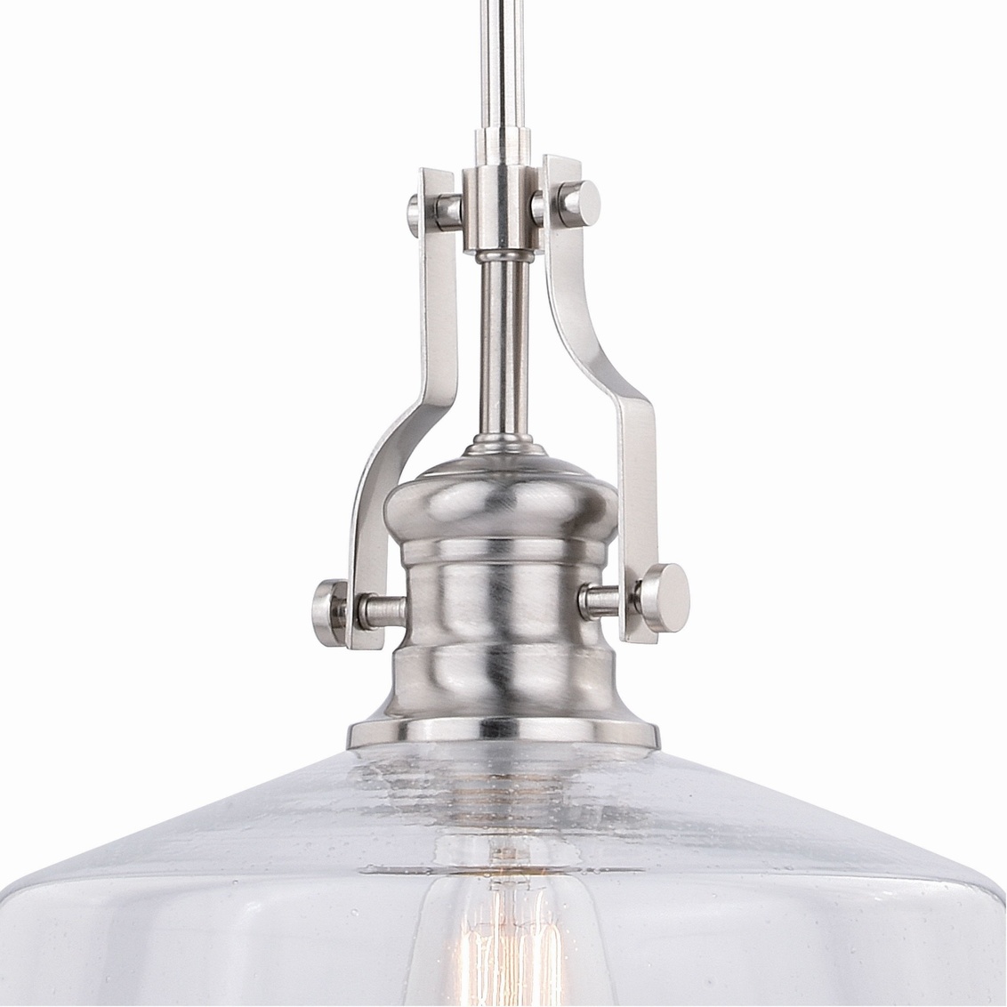 The Beloit collection a welcoming and inviting feel to your kitchen or living spaces. Soft curving lines finished in satin nickel, are paired with large clear seeded glass shades, creating a look that accents the most comfortable spaces. Combine that with a vintage Edison style filament bulb to complete the look. Bring a level of sophistication to your trendy farmhouse or urban style.