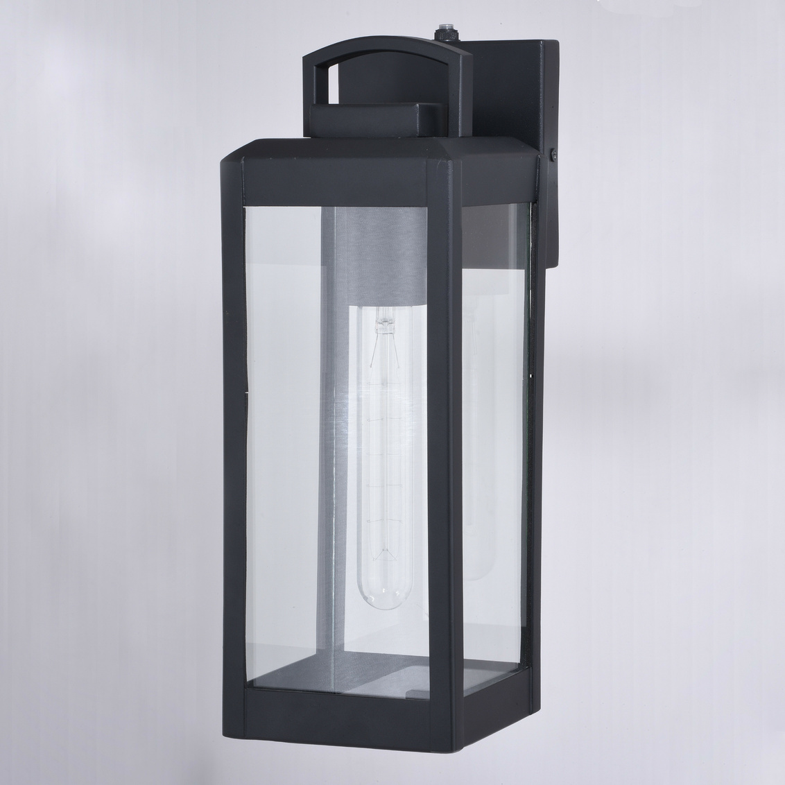 Elongated, slim, clear glass panels frame the Kinzie for a clean, contemporary feel. The oblong lantern handle adds an additional design element to this outdoor wall light collection. Finished in black, the Kinzie creates a bold but understated look perfect for highlighting your space. Combine that with vintage Edison style filament bulbs to complete the look. This outdoor wall light is ideal for your porch, entryway, garage, or any other area of your home.