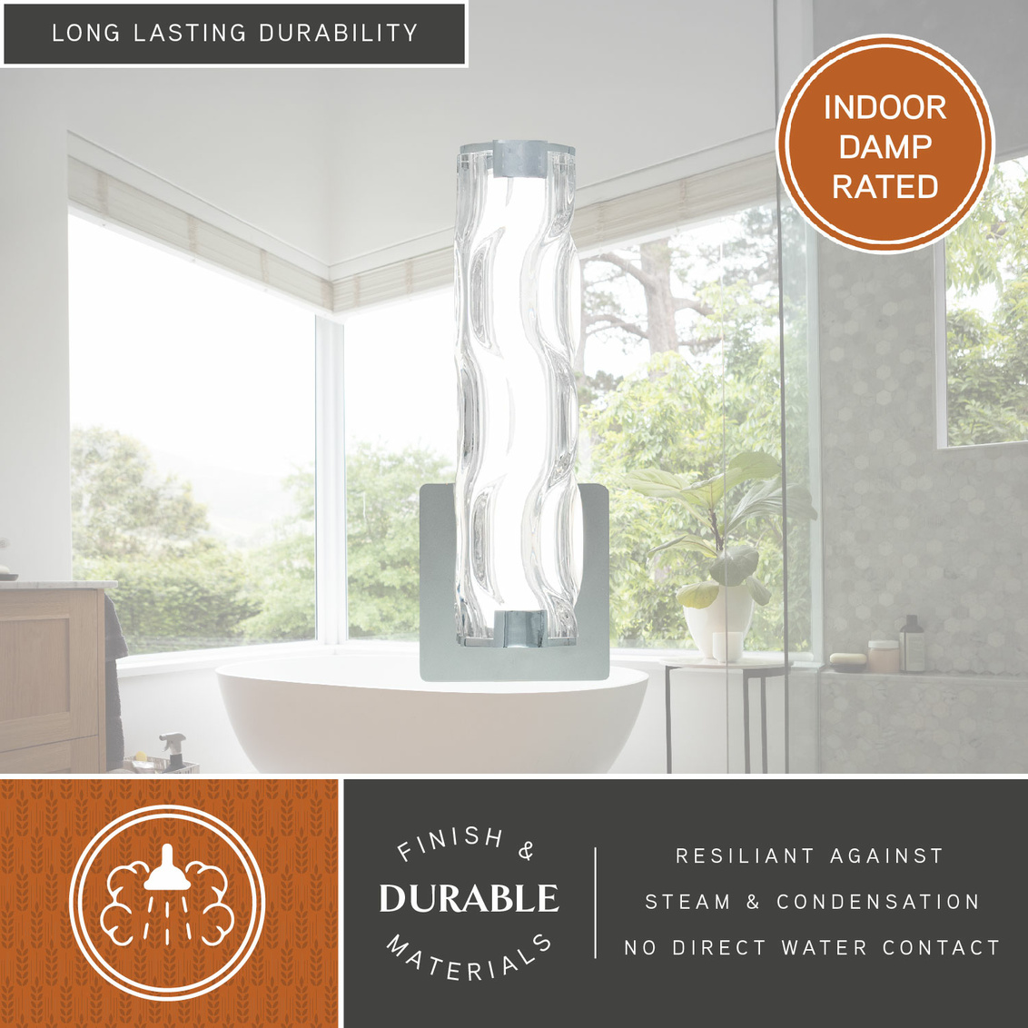 The sculpted glass of the Marseille collection adds visual interest and movement to an otherwise classic shape. The chrome and natural brass finish options blend well with contemporary decors. An integrated LED light source provides energy saving, no bulb changing convenience, low maintenance and long-lasting performance. This wall sconce is ideal for bathrooms, hallways, stairways, and foyers. This bathroom light is perfect over small vanities or as a pair over double sinks.