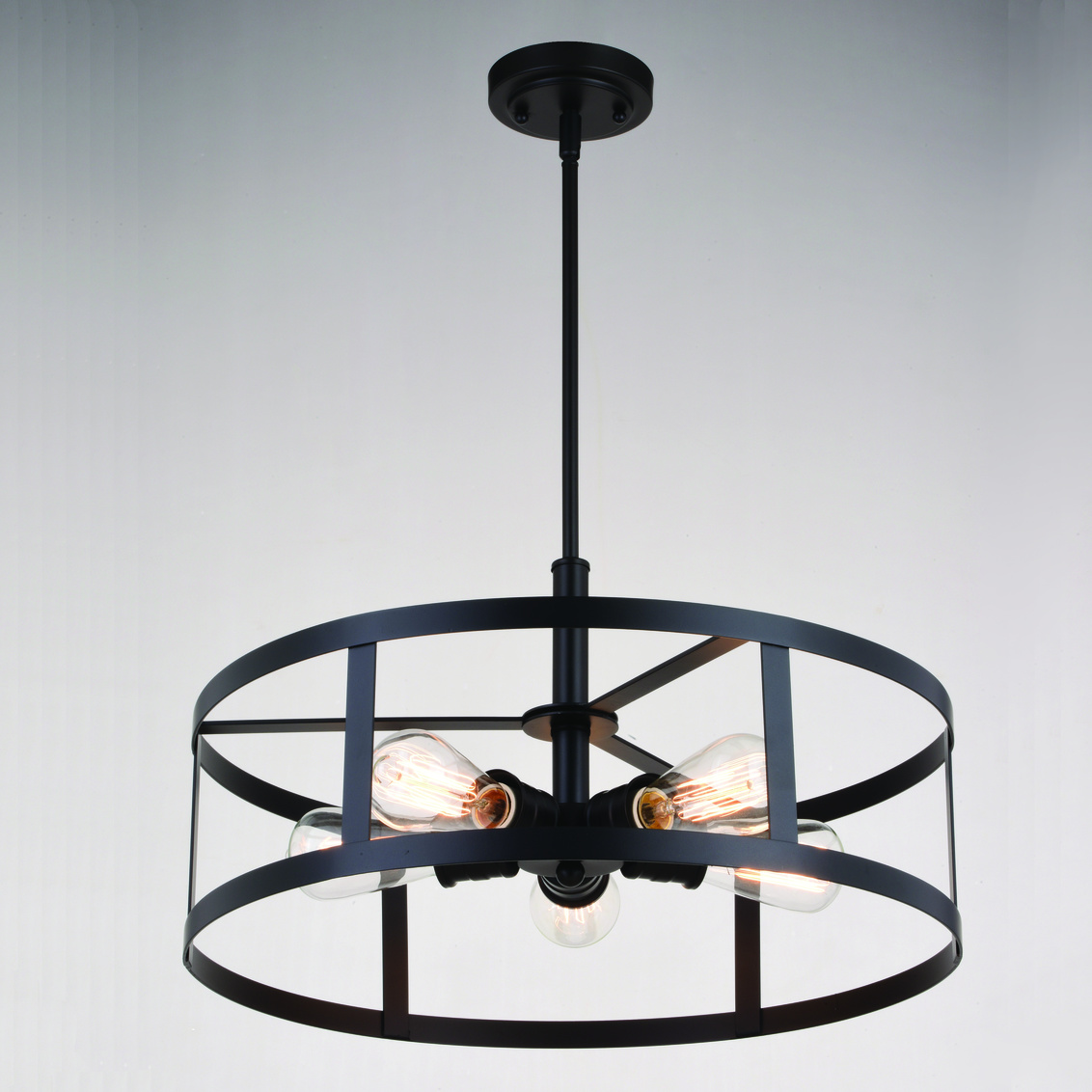 The modern soft industrial Akron collection has style and charm. A drum shape takes the stage in an oil rubbed bronze finish which surrounds the perfectly placed curving lamping, creating an ideal pairing. This 5-light pendant is perfect in any indoor space such as hallway, dining, or kitchen.