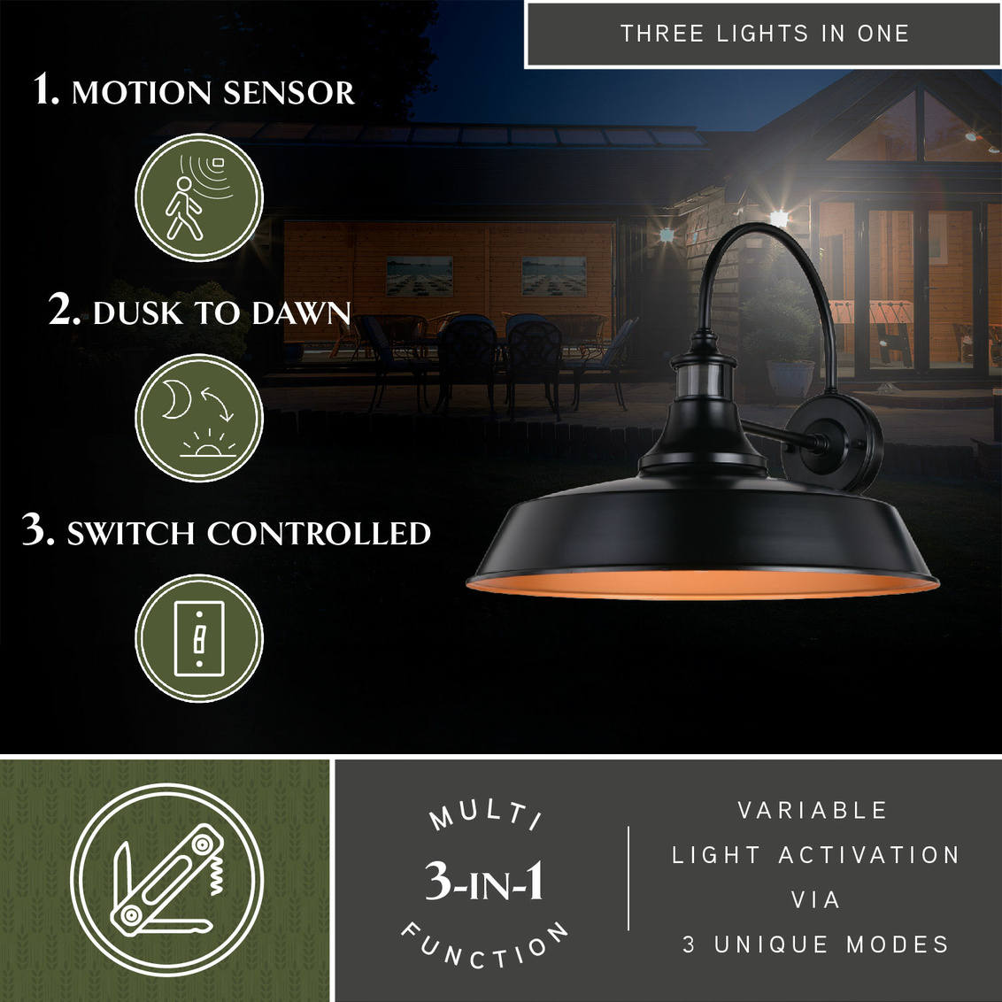 Dorado Dualux 18-in. Outdoor Motion Sensor Wall Light Dark Bronze and Light Gold
