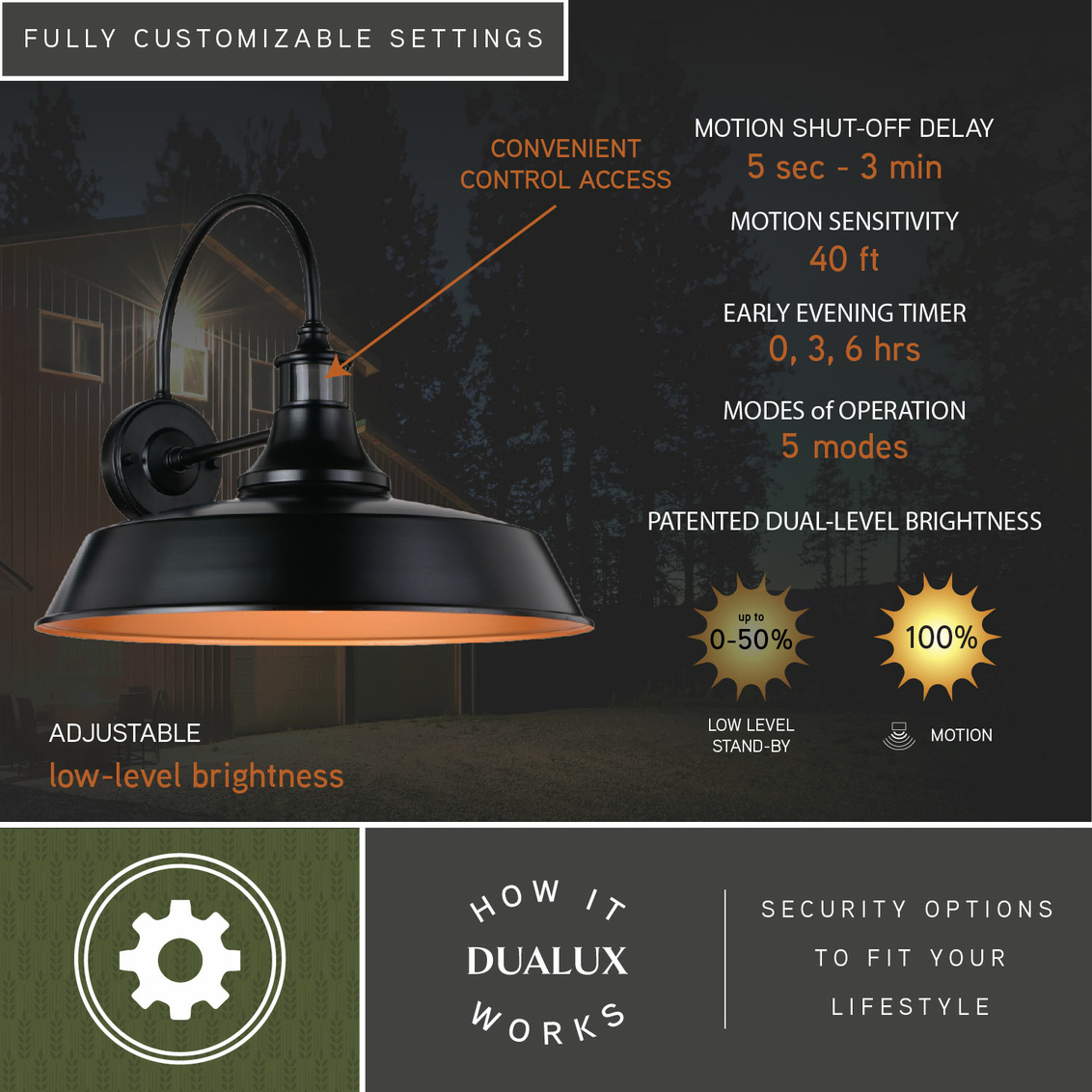 • Dorado Dualux 18-in. Outdoor Motion Sensor Wall Light Dark Bronze and Light Gold