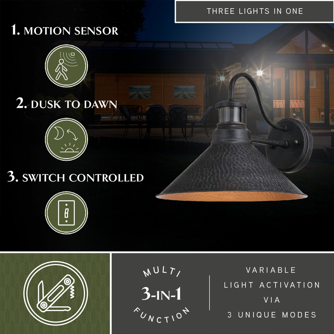 Outland Dualux 12-in. Outdoor Motion Sensor Wall Light Aged Iron and Light Gold