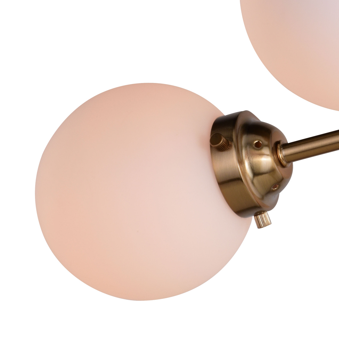 The Orbit sputnik collection is characterized by its retro flair. Outstretched arms are punctuated with frosted opal white glass globes. The muted brass finish showcases a familiar look from a mid-century modern time. This semi-flush mount ceiling light is ideal for hallways, living rooms, bedrooms, entryways, or utility rooms.