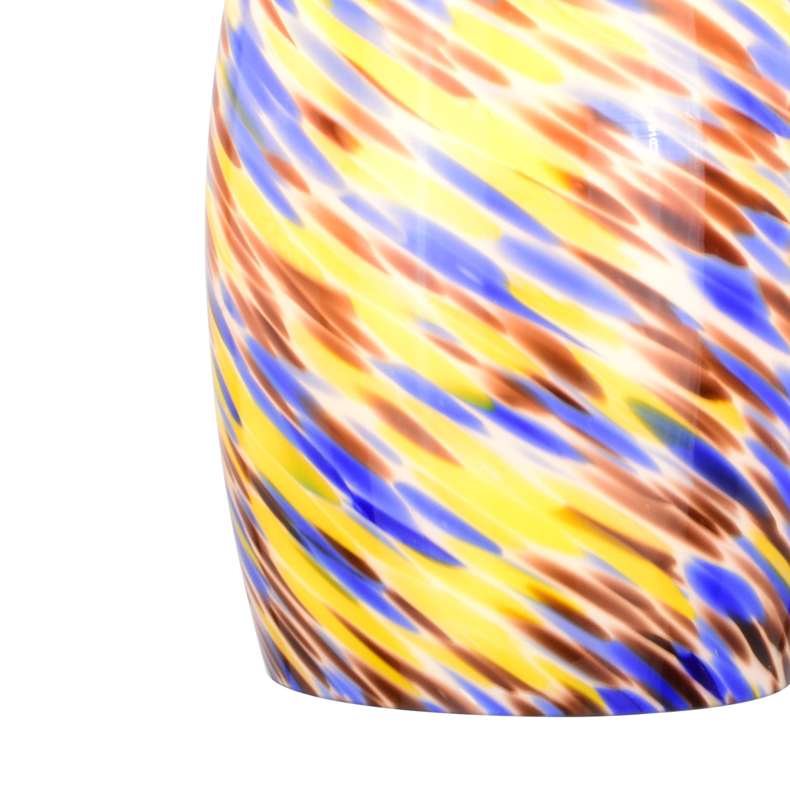 Reminiscent of venetian glass, the Milano mini pendant collection is a real showstopper. The sculpted shade suspends from a vertical support creating an eye-popping display of color and light. Striations of colors travel around the shade giving this art glass collection its energetic beauty. Lit or unlit, the Milano offers an artful touch to any modern home. Ideal for any kitchen, island, or living space. Add alone or as a grouping for that unique look. Note: Because each glass is handcrafted utilizing century-old techniques, no two pieces are identical.