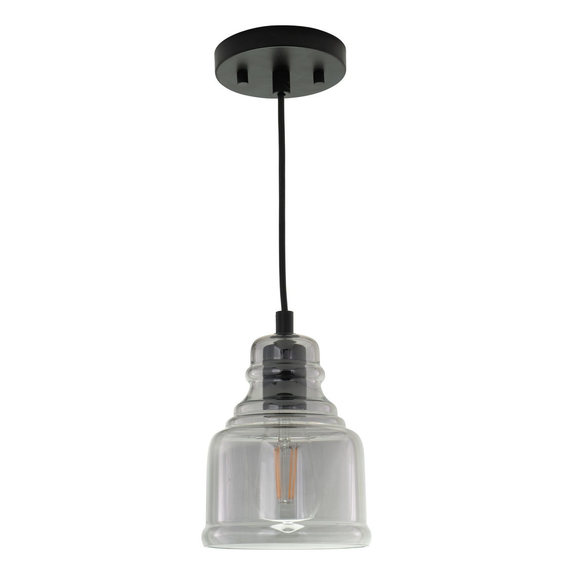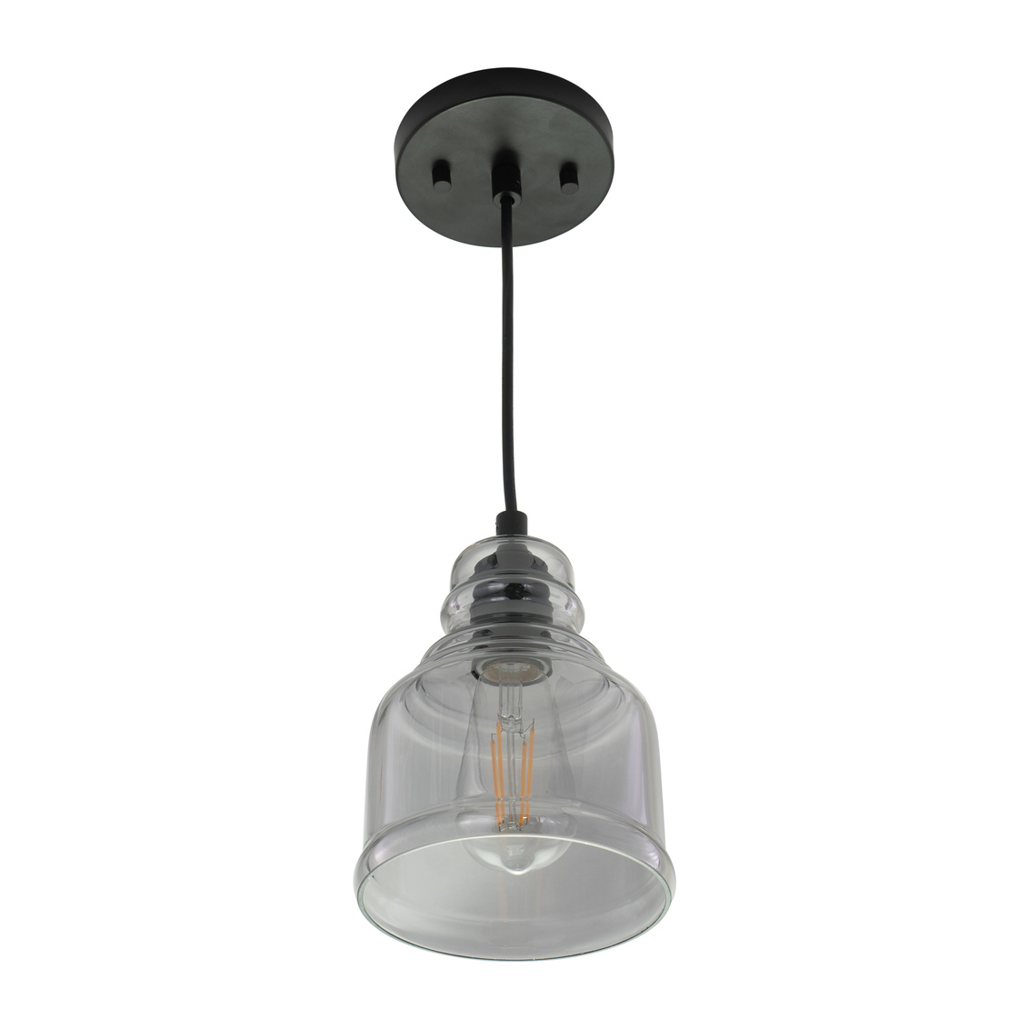 Keyword:Angled Ceiling Bar Area Bell Black Contemporary Cord Dining Room Edison Filament Fixture Glass Gray Grey Hanging Indoor Interior Kitchen Island LED Compatible Lighting Matte Metal Mini Pendant Mount Sloped Smoky Transitional Vaulted