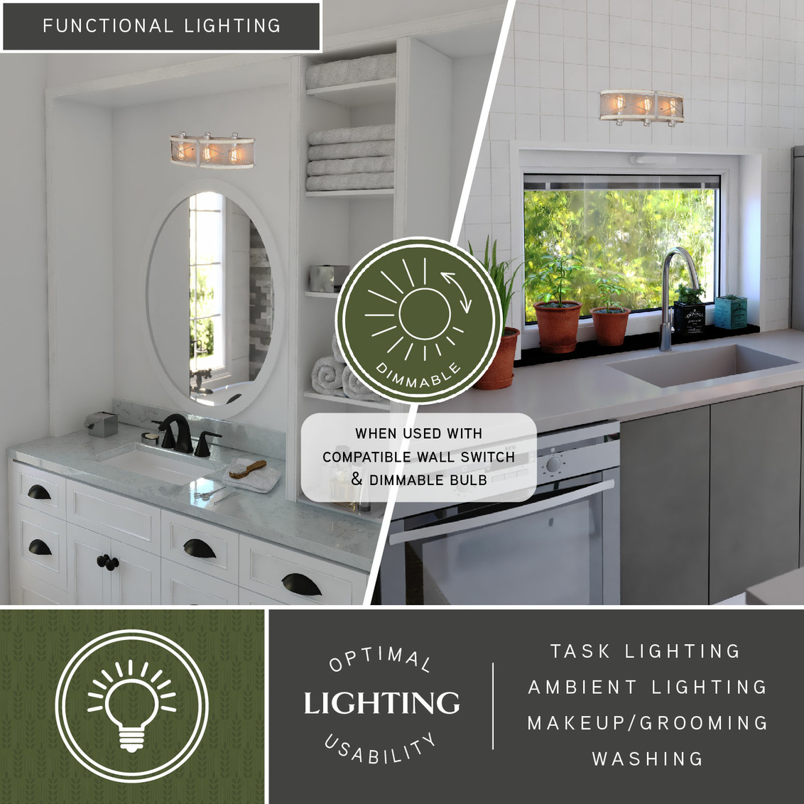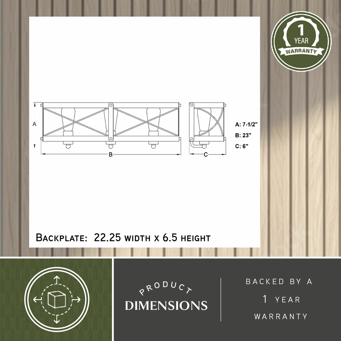 This vanity emphasizes the modern in modern country. The white wash faux wood detail together with the galvanized finish is the perfect combination. This versatile style will add that touch of sophistication to your bath. Look no further, this vanity light is the right one for you.