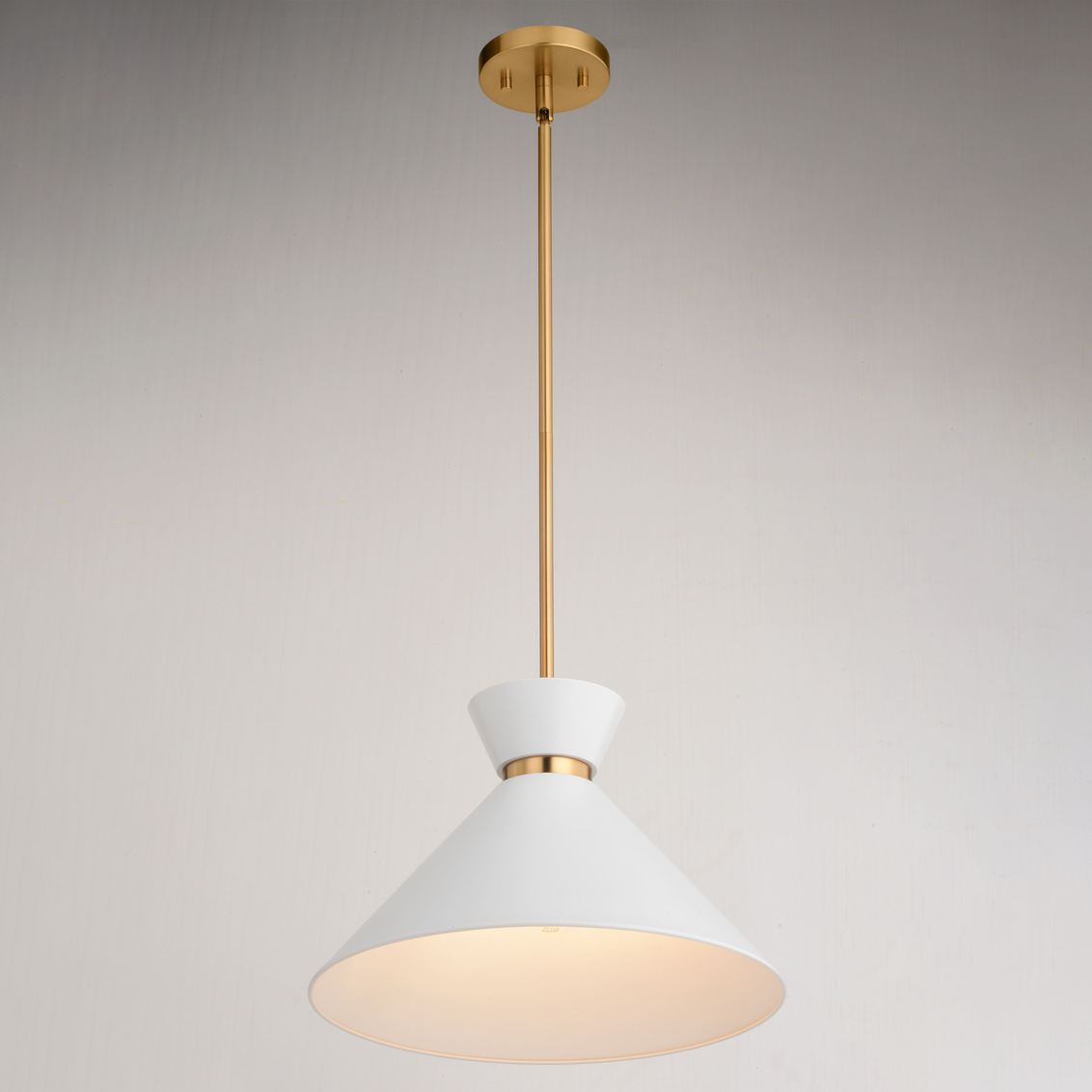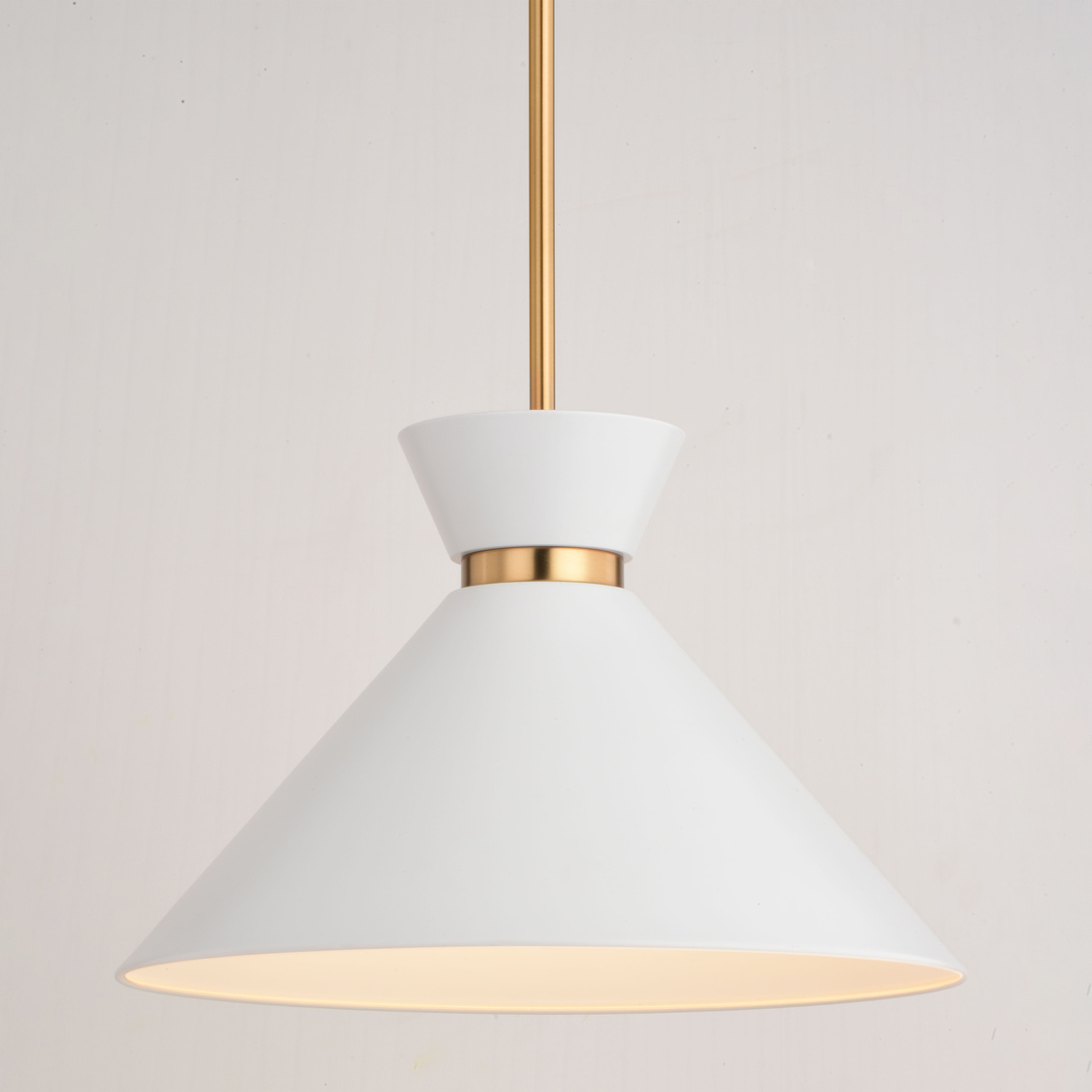 Keyword:Adjustable Angled Ceiling Bowtie Brass Cone Contemporary Dimmable Dining Room Down Downrod Entry Entryway Family Fixture Foyer Gold Hanging Indoor Interior Kitchen Island LED Compatible Lighting Matte Metal Shade Mid-Century Modern Mount Natural Pendant Light Sloped Steel Vaulted White