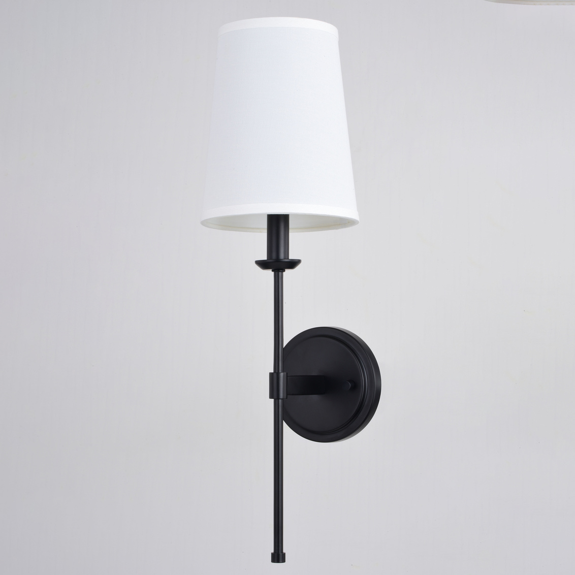 Keyword:Bedroom Bedside Black Candelabra Cone Dimmable Dining Room Entryway Fabric Family Fixture Foyer Hallway Indoor Interior LED Compatible Lighting Linen Matte Mount Sconce Shaded Traditional Transitional Wall Light White