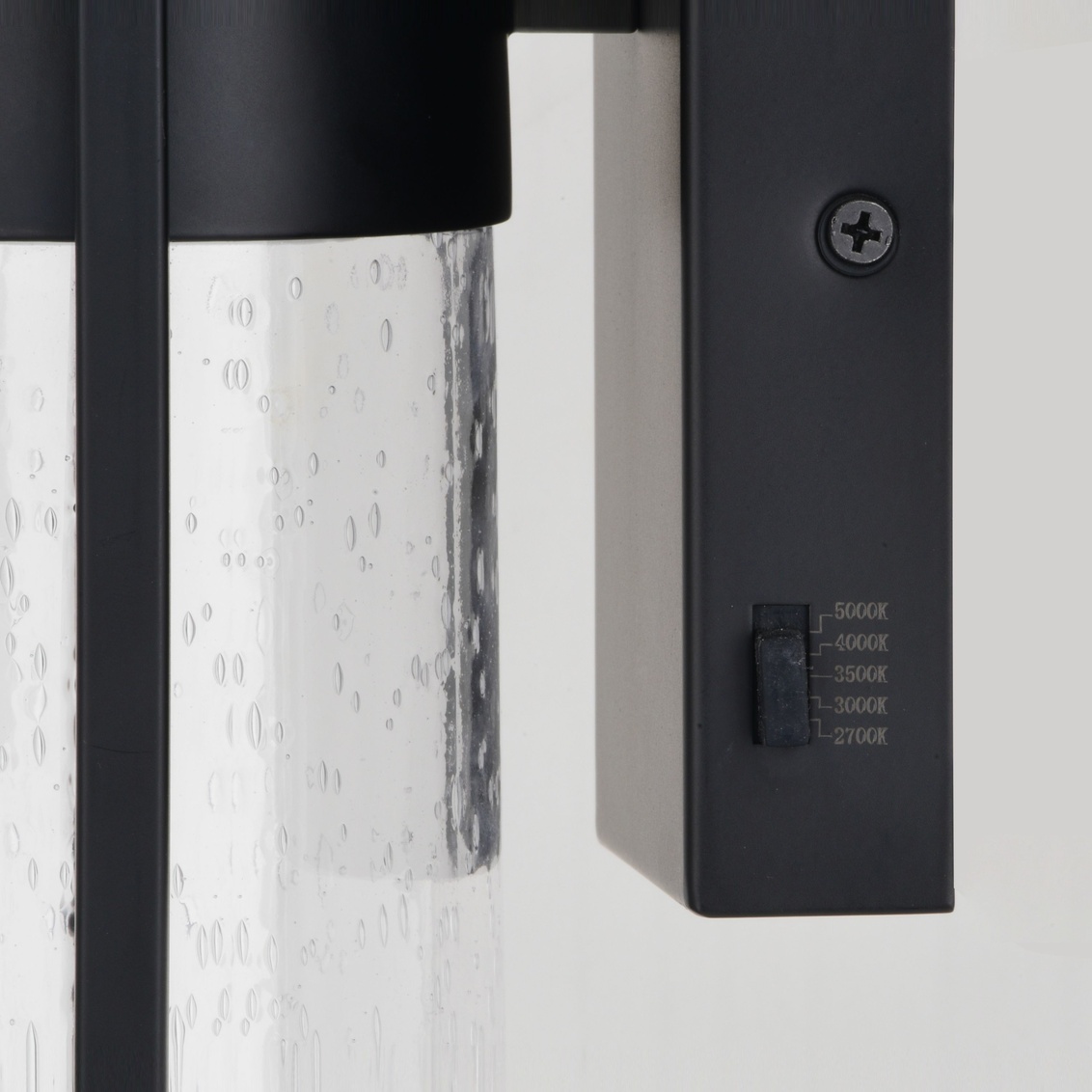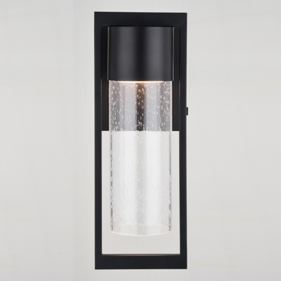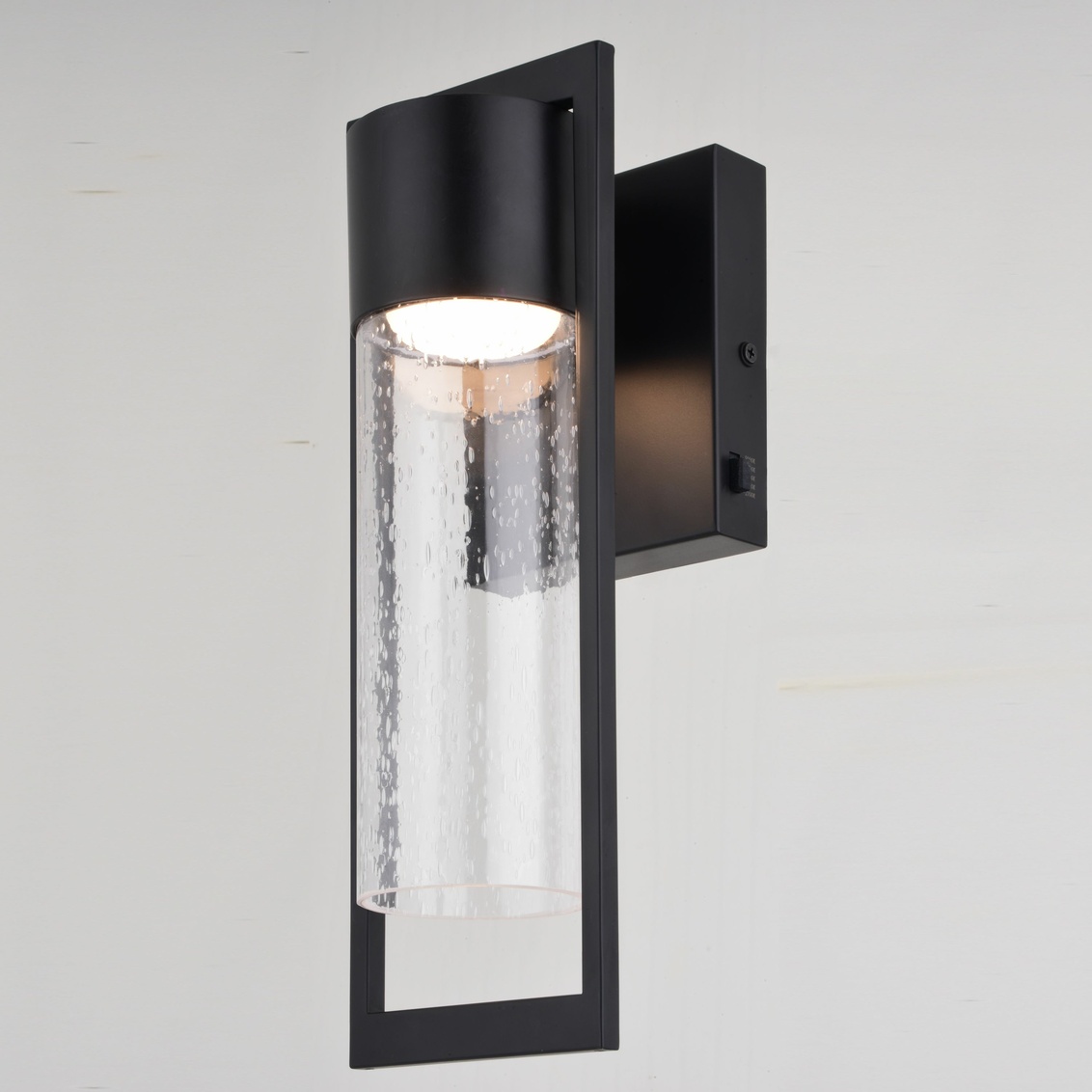 Keyword:Black Clear Color Changing Levels Contemporary Cylinder Deck Energy Efficient Saving Entry Exterior Fixture Front Door Garage Glass Integrated LED Lantern Lighting Matte Mount Outdoor Wall Light Seeded Steel Transitional