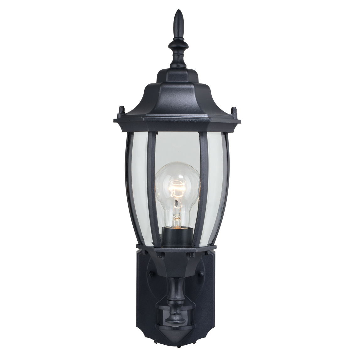 The traditionally-styled Rogers Park motion-sensor outdoor wall light is a classic beauty. The textured black finish with clear beveled glass... Show more