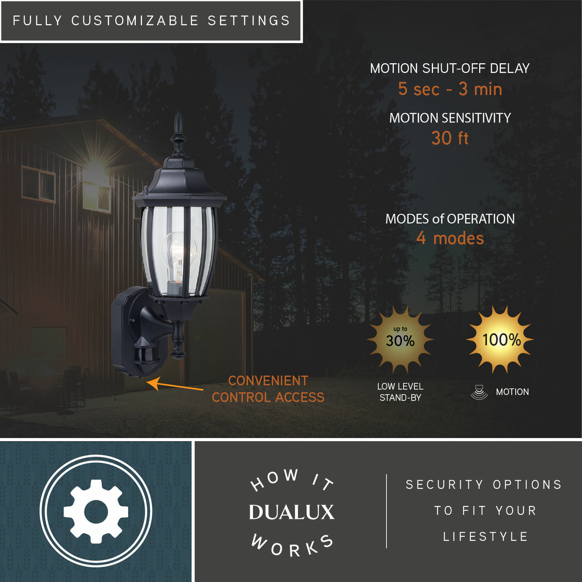 • Rogers Park Dualux 6.5-n. Outdoor Motion Sensor Wall Light Textured Black
