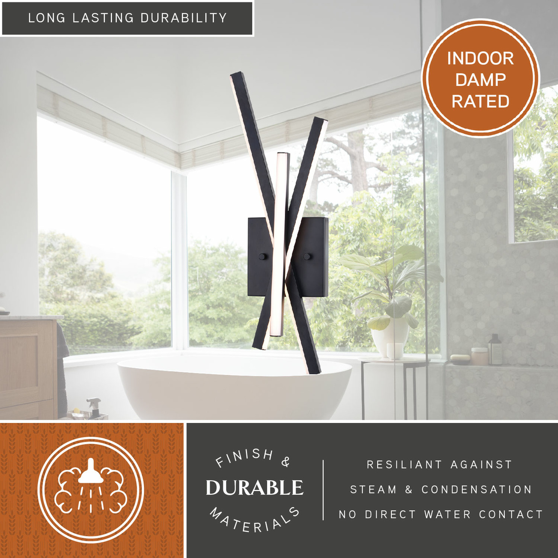 The simplicity and creativity of contemporary style meets a competitive low price point with the Barcelo wall light. Matte black integrated LED strips playfully radiate from the backplate creating a sculptural geometric aesthetic and yet a functional illumination of your space. Its damp rating means you can make a statement with the Barcelo in your bathroom, as well as kitchen, dining room, hallways, or bedrooms.