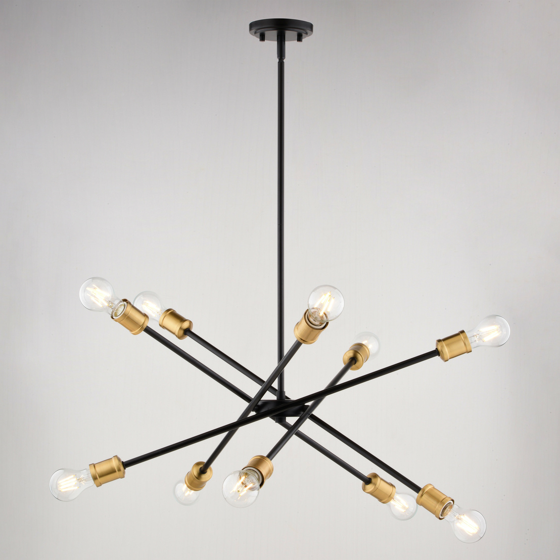 Experience the allure of timeless elegance with the Gresham Chandelier, a mid-century modern marvel that will redefine your space with its classic sputnik silhouette and striking two-tone finish. The matte black arms with antique gold contrasts, create a dramatic visual statement, perfect for adding a touch of sophistication to your dining room, living room, or foyer.
