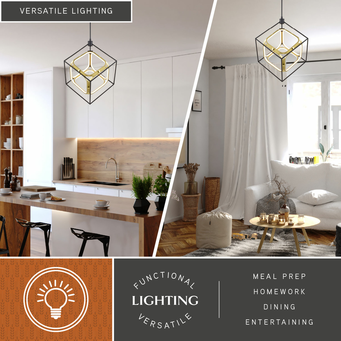 Make a bold statement with the Anson LED pendant's striking square-in-square design and integrated LED light. Its clean lines and contemporary flair effortlessly complement modern kitchens, minimalist dining areas, or industrial-style lofts. Enjoy the perfect blend of form and function as the Anson pendant illuminates your space with a warm and inviting glow.