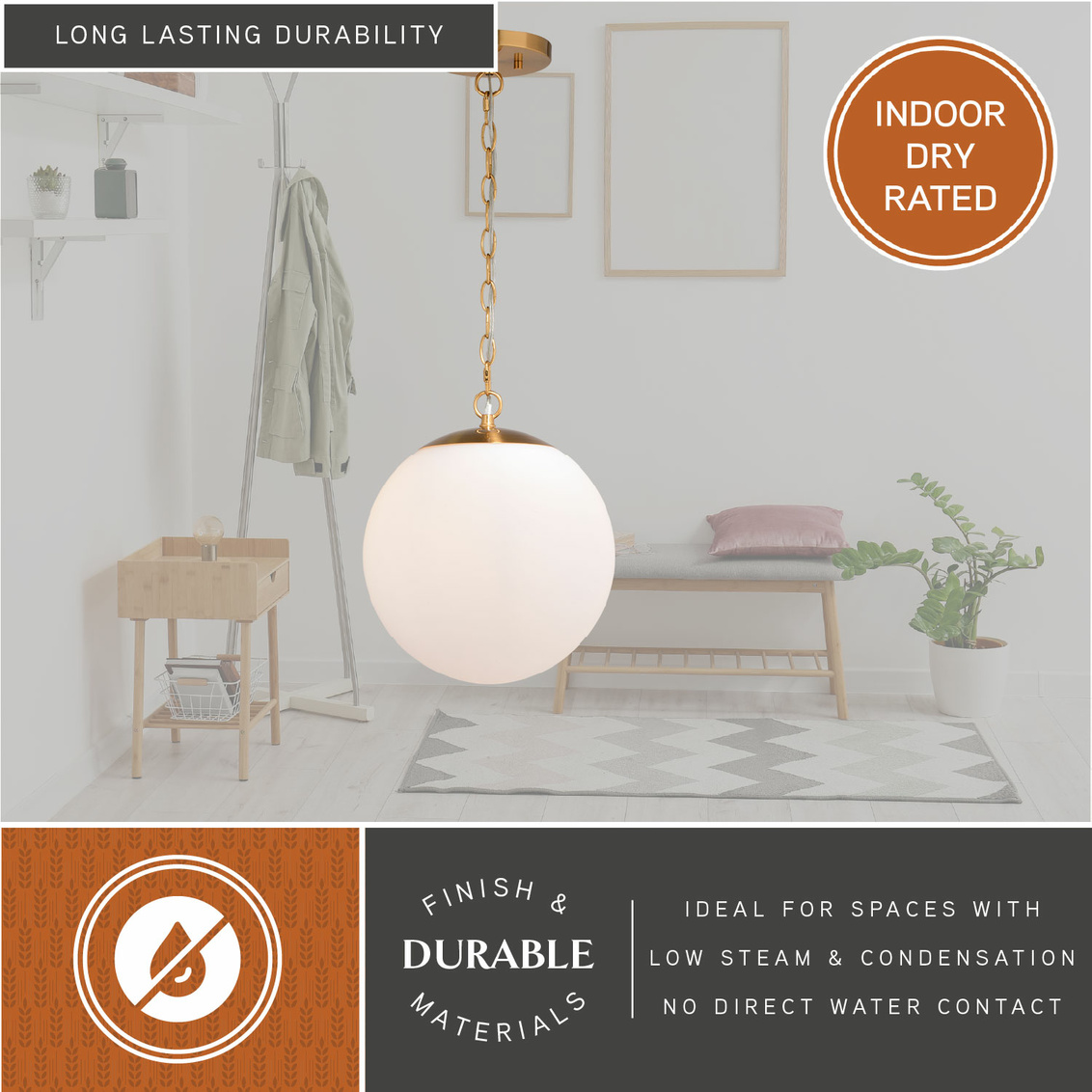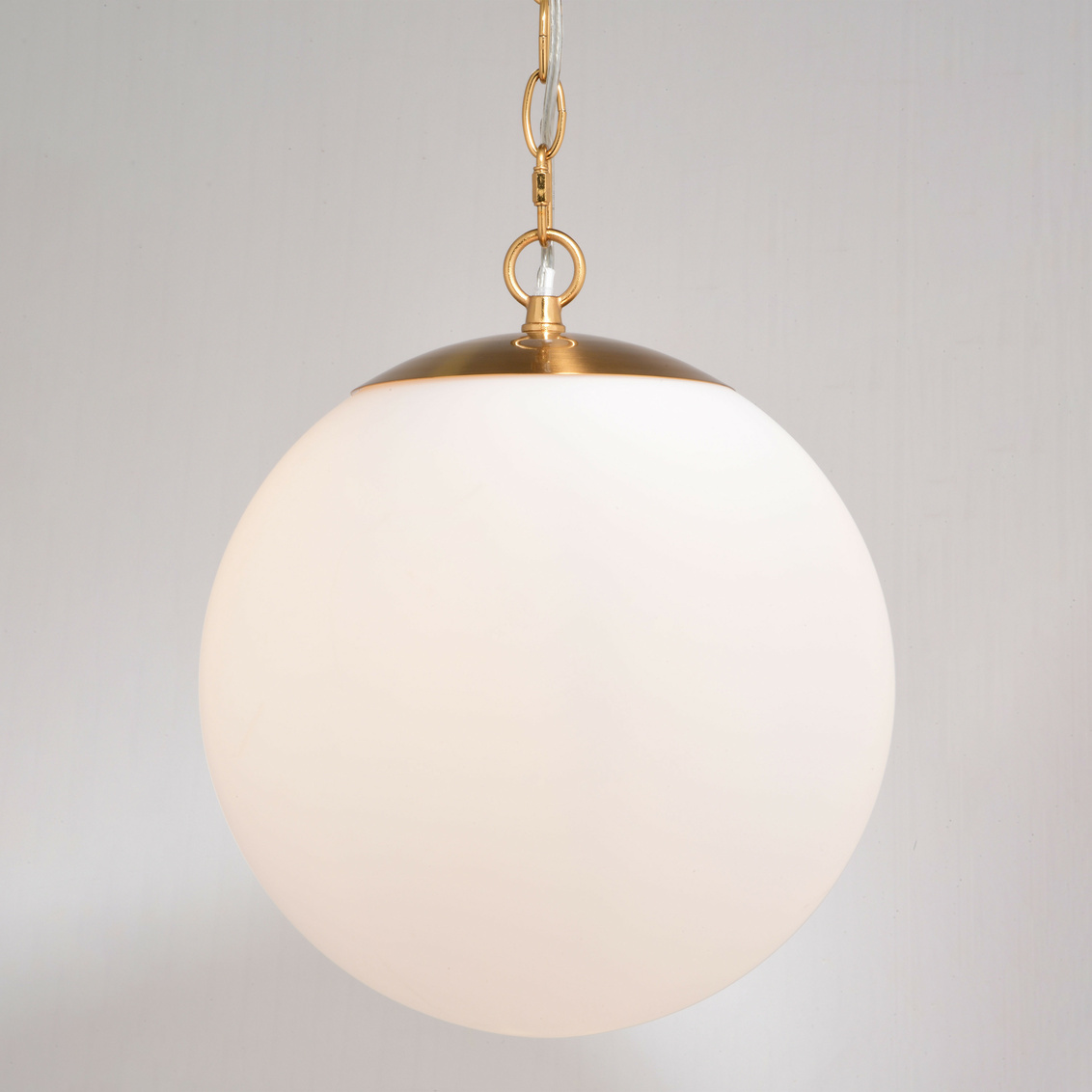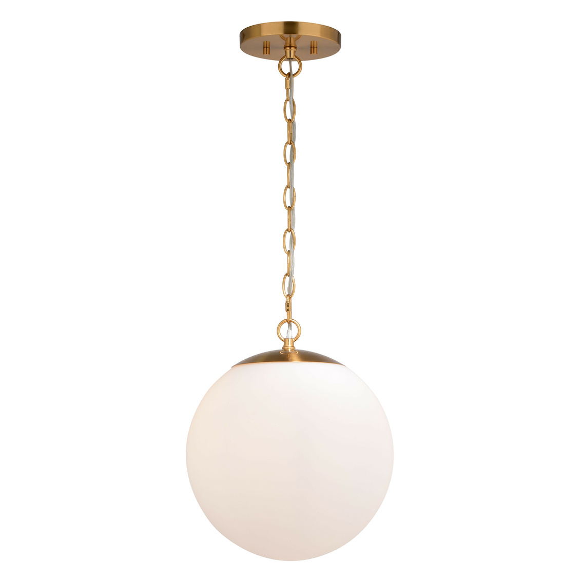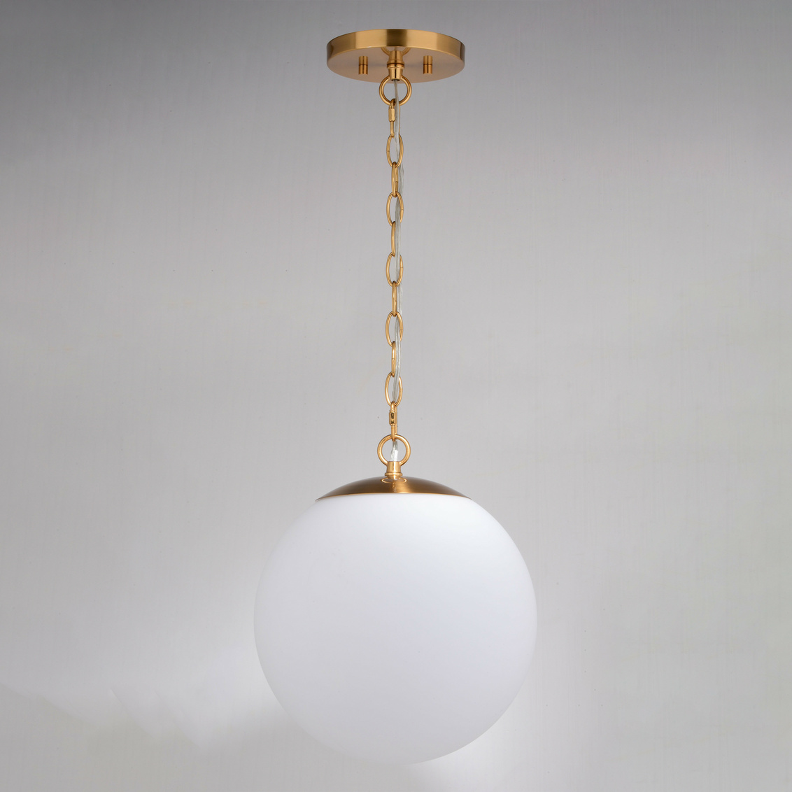 The Linden 12-in. globe pendant seamlessly marries mid-century modern allure with contemporary sophistication, boasting a stunning composition of frosted opal glass and muted brass finish. It effortlessly complements today's hottest decor trends and serves as a captivating centerpiece that casts an inviting glow in your foyer, kitchen, or bedroom.