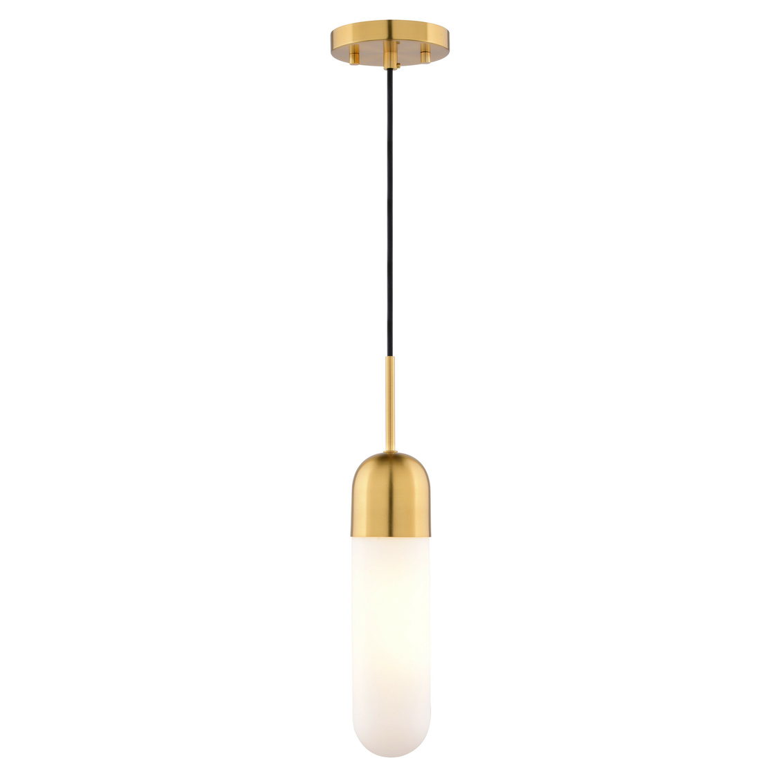 The Thalia Mini Pendant is a modern masterpiece for adding a playful sophistication to your kitchen. Its unique pill-shaped design with warm antique gold finish and soft white glass, provides a versatile aesthetic that will complement your contemporary, mid-century modern or even transitional style. The Thalia Mini Pendant is the perfect focal point for a breakfast bar or homework zone that craves a touch of modern whimsy.