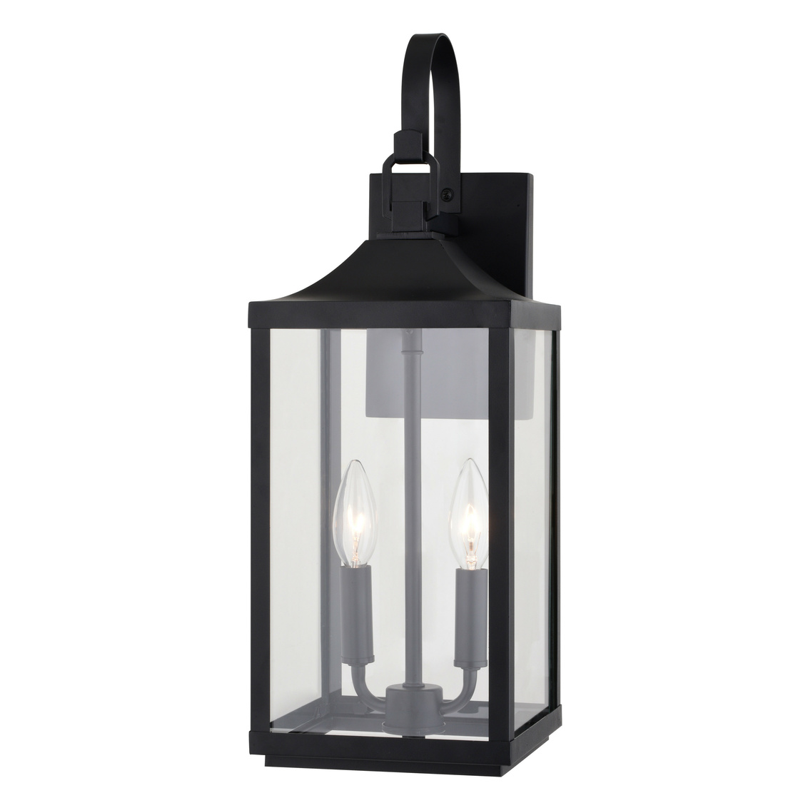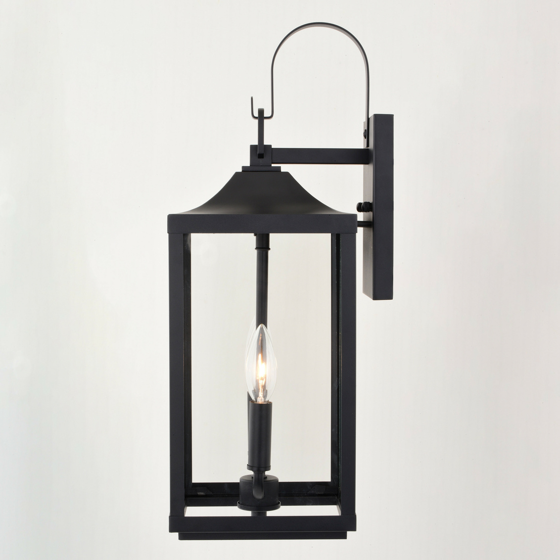 Step back in time with the traditional elegance of the Old Town outdoor wall light. Its arched handle detail, textured black finish and clear glass shade evoke a timeless charm. Perfect for refining the front entrances, garages, or back entryways of your home.