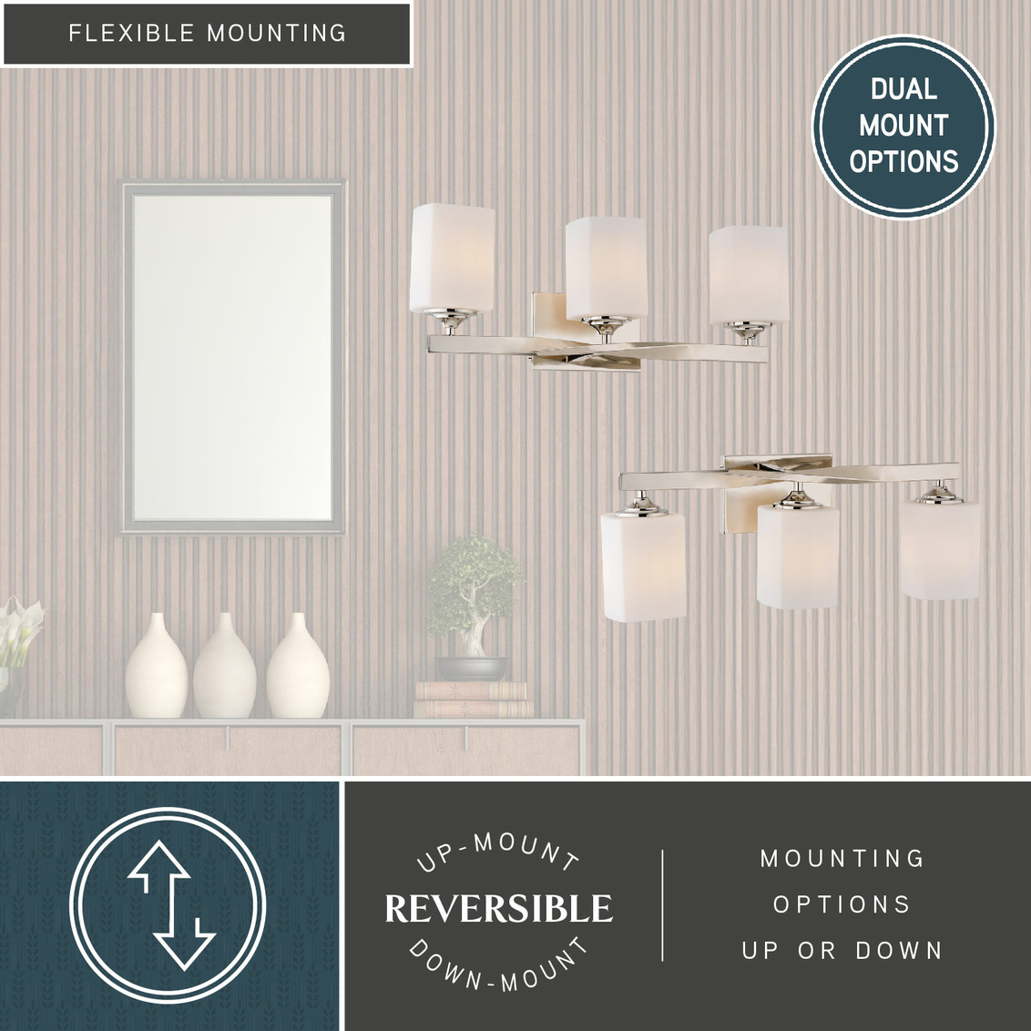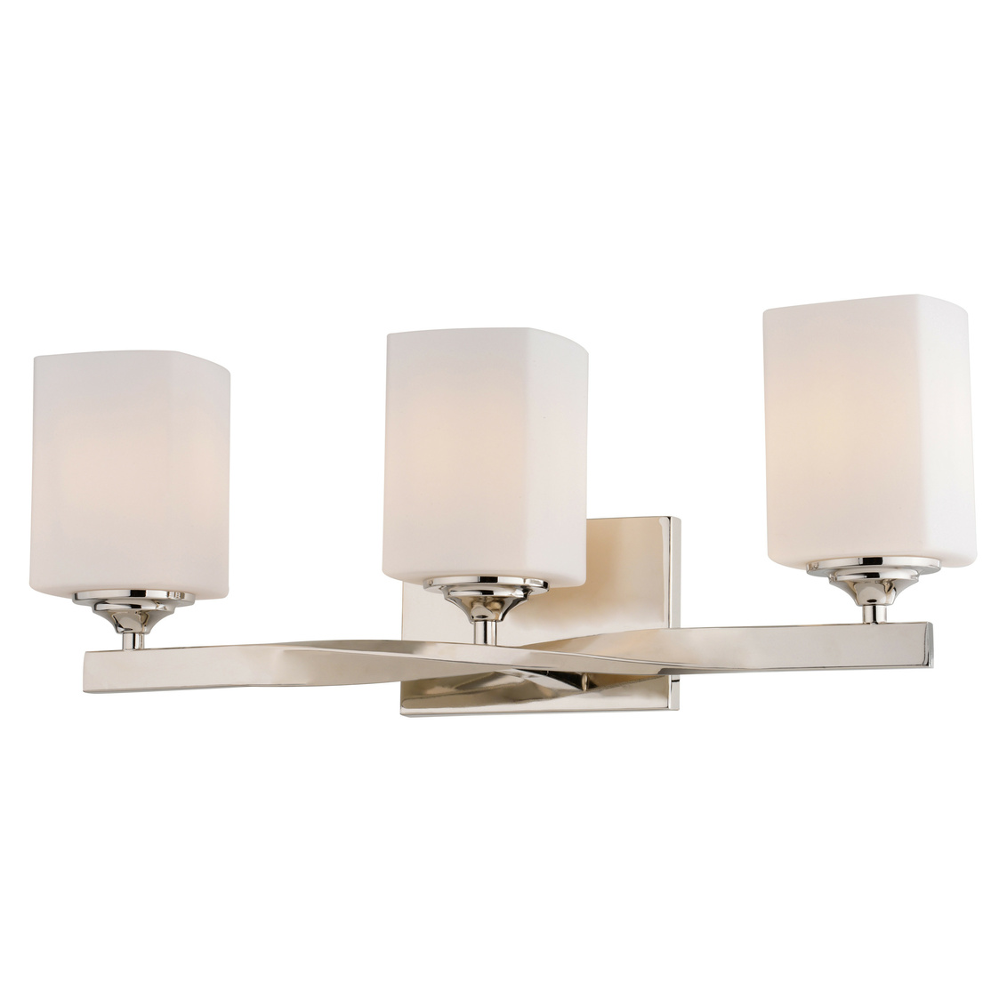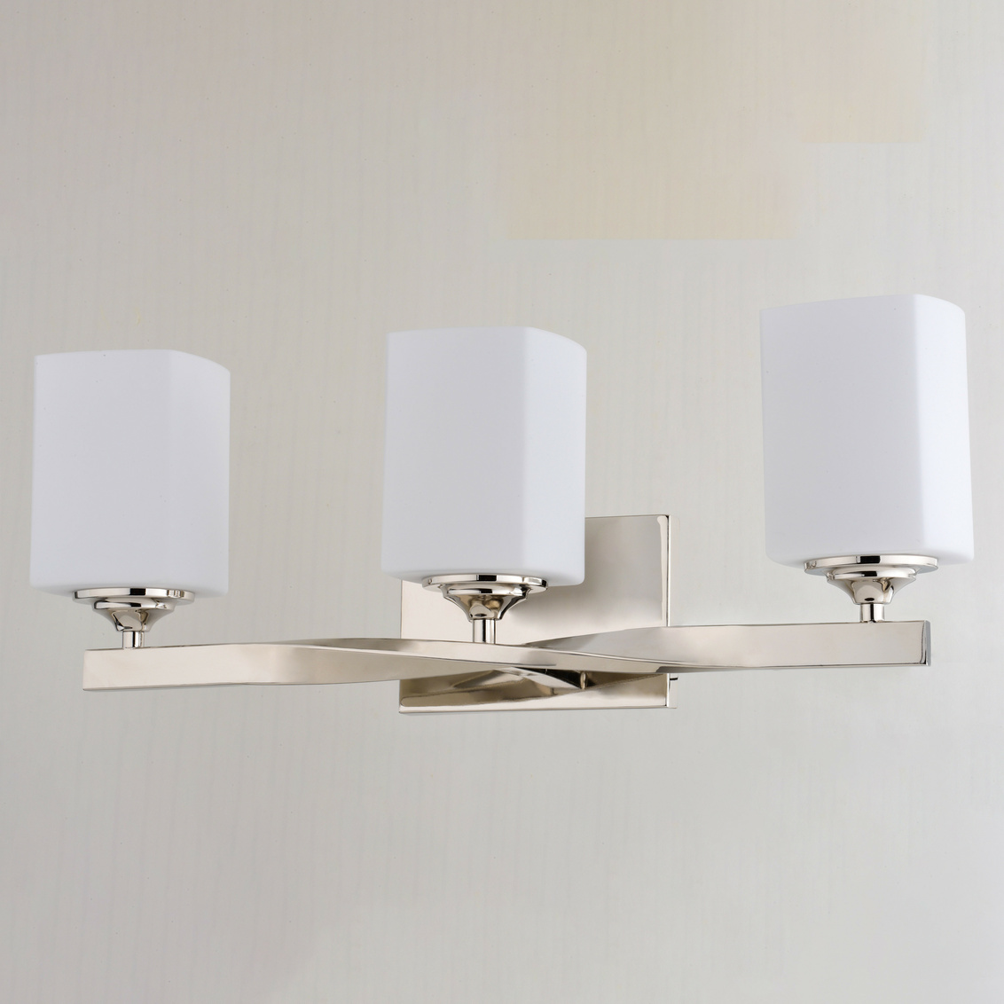 Create a sophisticated ambiance with the updated transitional Robey vanity light. Its polished nickel finish and frosted white glass shade... Show more