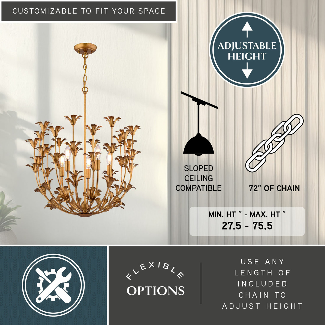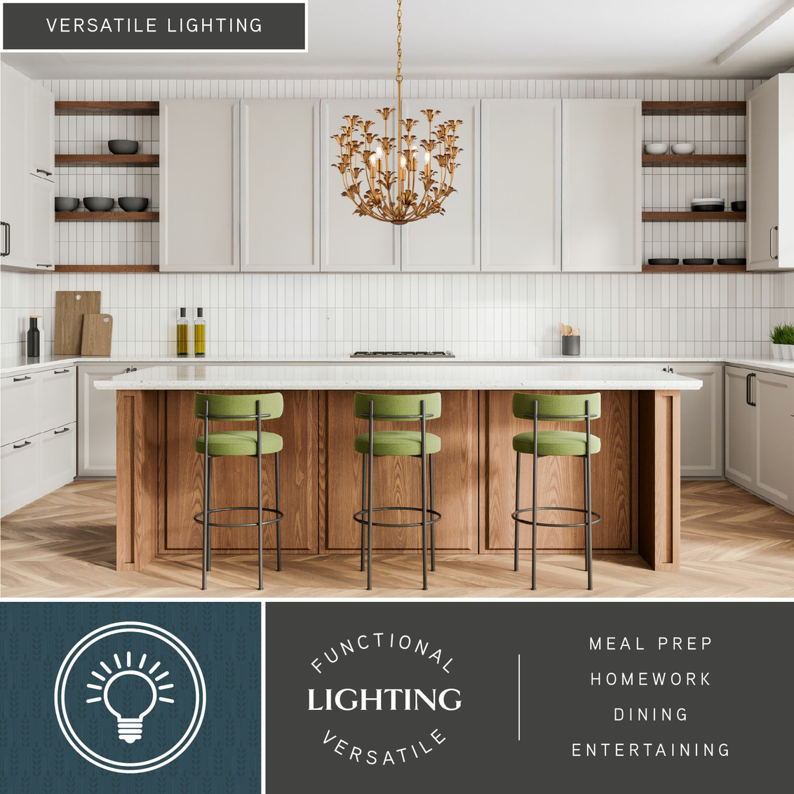 Camellia's unique blend of nature-inspired beauty and glamorous style makes it a perfect complement to both modern and transitional interiors. This stunning ceiling light fixture features a trending floral design in a luxurious gilded gold finish, creating a focal point that's both eye-catching and sophisticated. Imagine this pendant's botanical-inspired elegance casting a warm, inviting glow over your dining table or adding a touch of drama to your foyer.