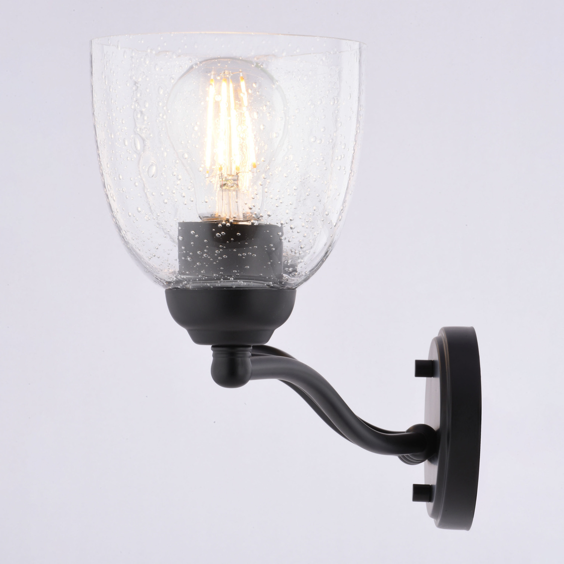 Transform your bathroom's ambiance with the Bellwood 4-light vanity, a perfect blend of classic design and modern sophistication. The matte black finish provides a timeless feel, while the clear seeded glass shades add a touch of vintage charm, diffusing a warm, inviting light. This wall light reimagines traditional style with thoughtfully updated details, including classic sphere accents and graceful tulip glass shades. Damp-rated for lasting performance, the Bellwood vanity is designed to withstand the moisture of bathroom environments. Enhance your daily routine with a fixture that seamlessly bridges traditional charm and modern functionality.