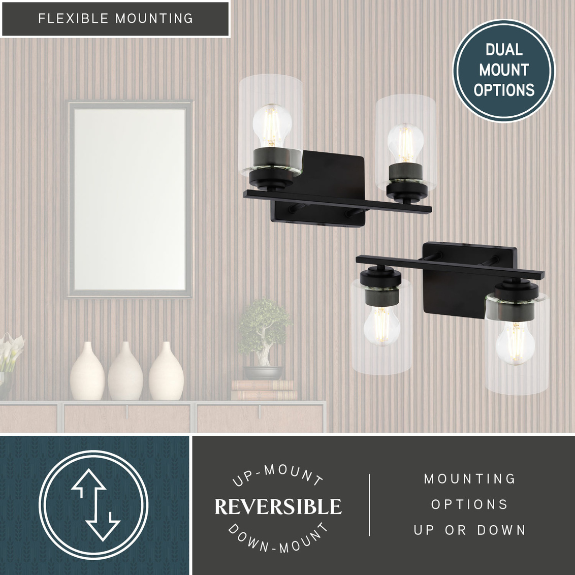 Bring a touch of minimalist sophistication to your bathroom with the Park Ridge 2-Light Vanity. Its matte black finish and... Show more