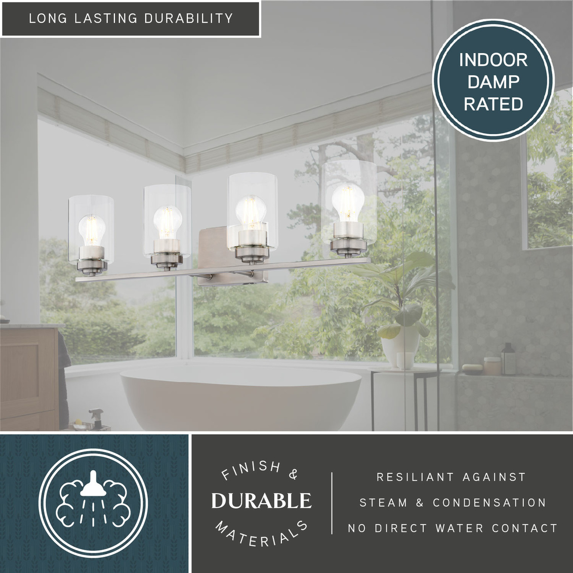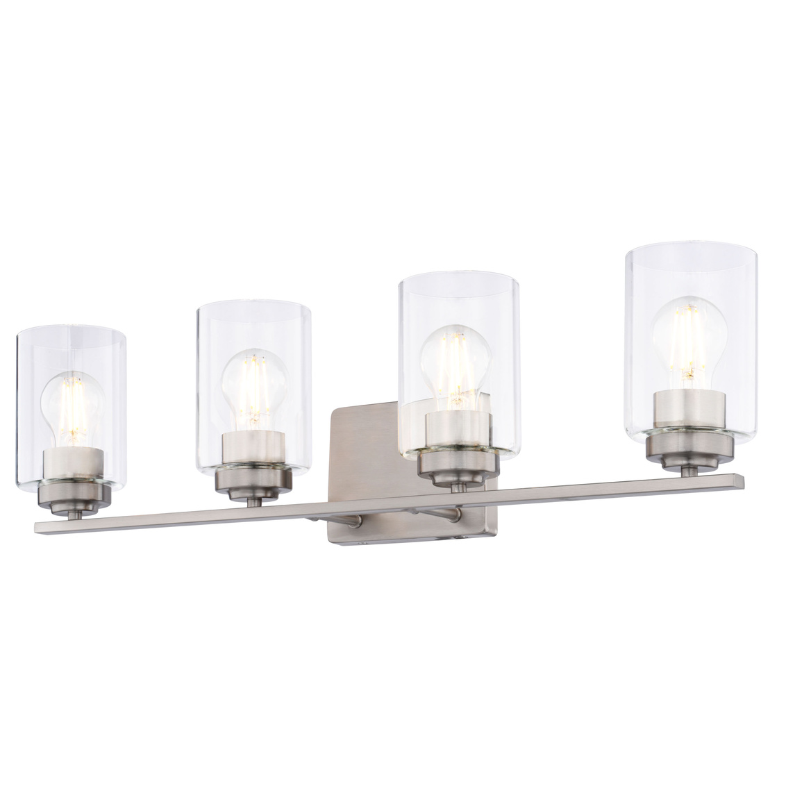 Bring a touch of minimalist sophistication to your bathroom with the Park Ridge 4-light vanity wall fixture. Its satin nickel finish and clear cylindrical glass shade create a striking focal point, casting a crisp, radiant glow perfect for any bathroom setting. Whether your style is contemporary, transitional, or even modern farmhouse, its clean lines and timeless design will complement your decor. The streamlined, straight bar design offers a contemporary edge, seamlessly blending transitional and modern aesthetics, while ensuring a quick and effortless upgrade to your space. Experience the perfect balance of style and function, transforming your bathroom into a personal sanctuary.