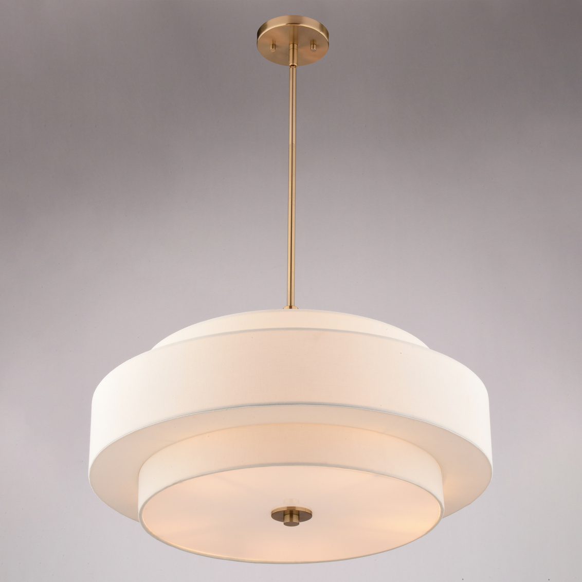 The Brentwood pendant brings mid-century modern style to life with its clean, tiered fabric shade design. A crisp white linen shade creates a warm, even... Show more