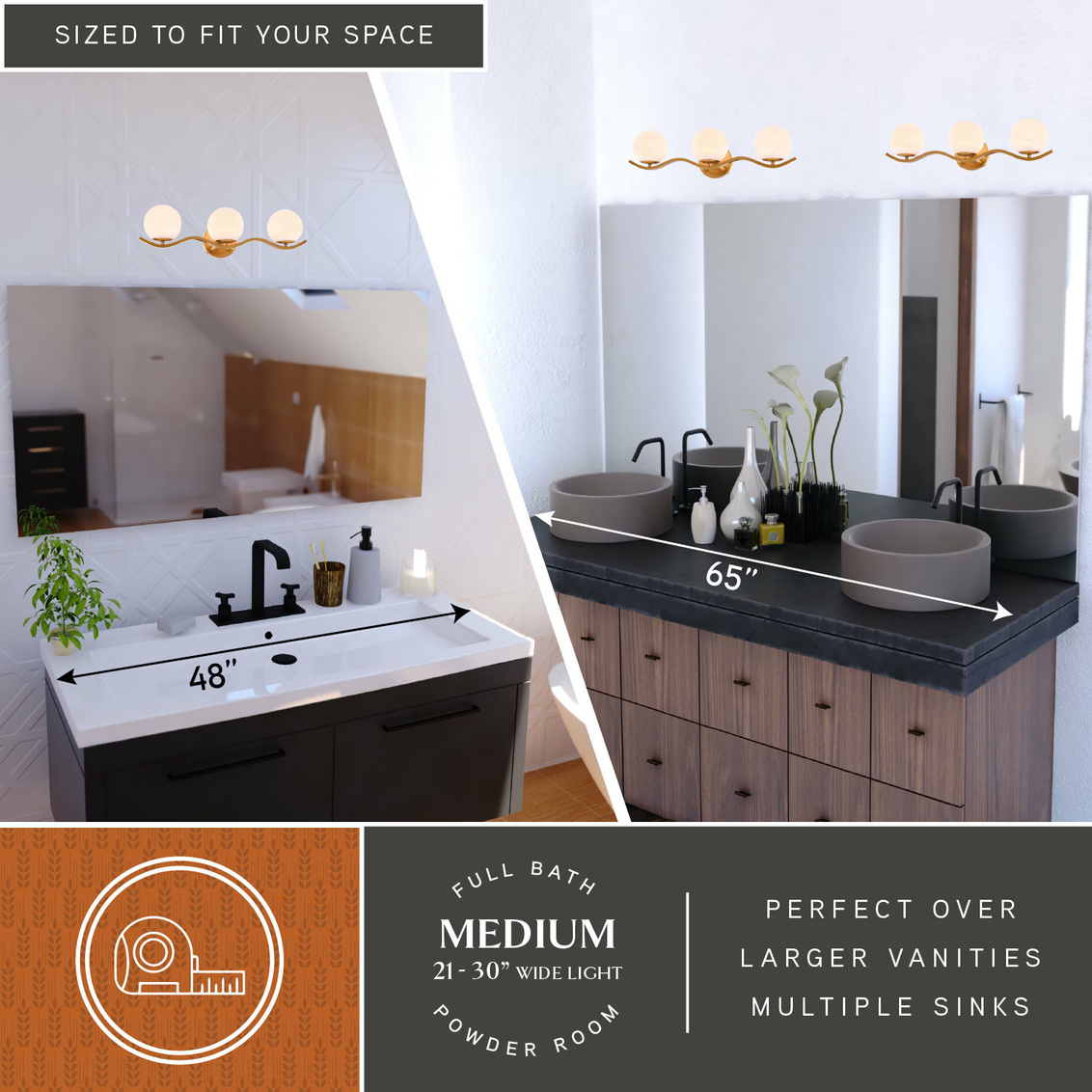 Keyword:Alabaster Bath Bathroom Bar Light Brass Contemporary Damp Dimmable Fixture Glass Globe Gold LED Compatible Lighting Metal Mount Over Mirror Reversible Sconce Shades Transitional Vanity Wall White