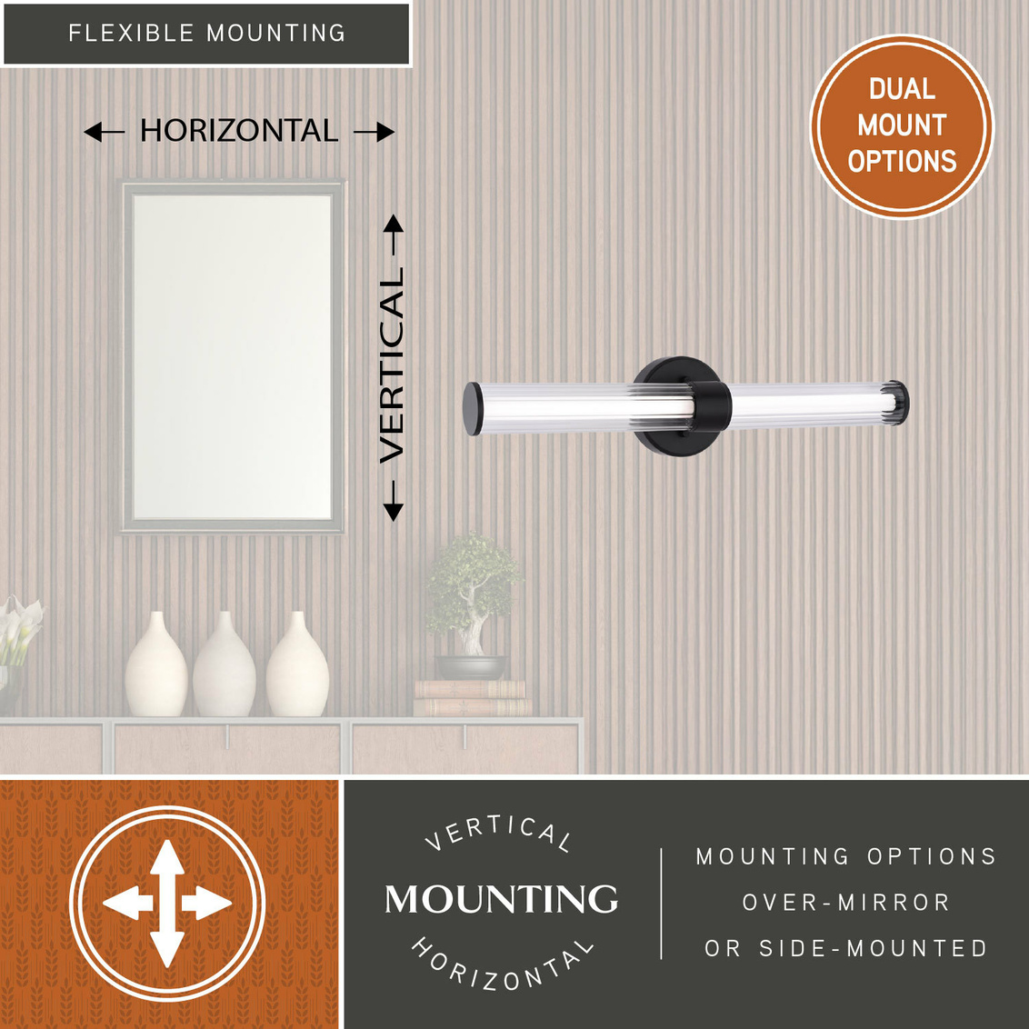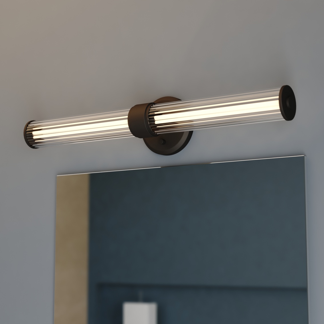 Keyword:Bath Bathroom Bar Light Black Clear Contemporary Damp Dimmable Fixture Glass Horizontal LED Compatible Lighting Matte Metal Mount Over Mirror Ribbed Sconce Shades Transitional Vanity Vertical Wall