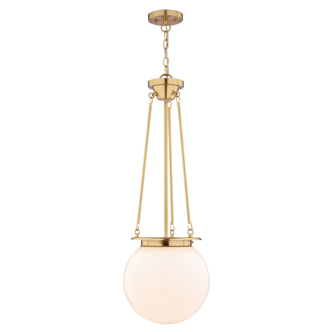 The Kent pendant captures vintage charm with its sculpted form and warm muted brass finish. A frosted opal glass globe diffuses light beautifully, creating a cozy and inviting atmosphere that complements both traditional and cottage-inspired interiors. The included 4-foot chain allows for adjustable hanging height, making it ideal for kitchens, dining areas, or entryways. With its simple yet graceful design, the Kent ceiling pendant blends timeless elegance with everyday versatility, perfect for adding a touch of warmth and character to your home.
