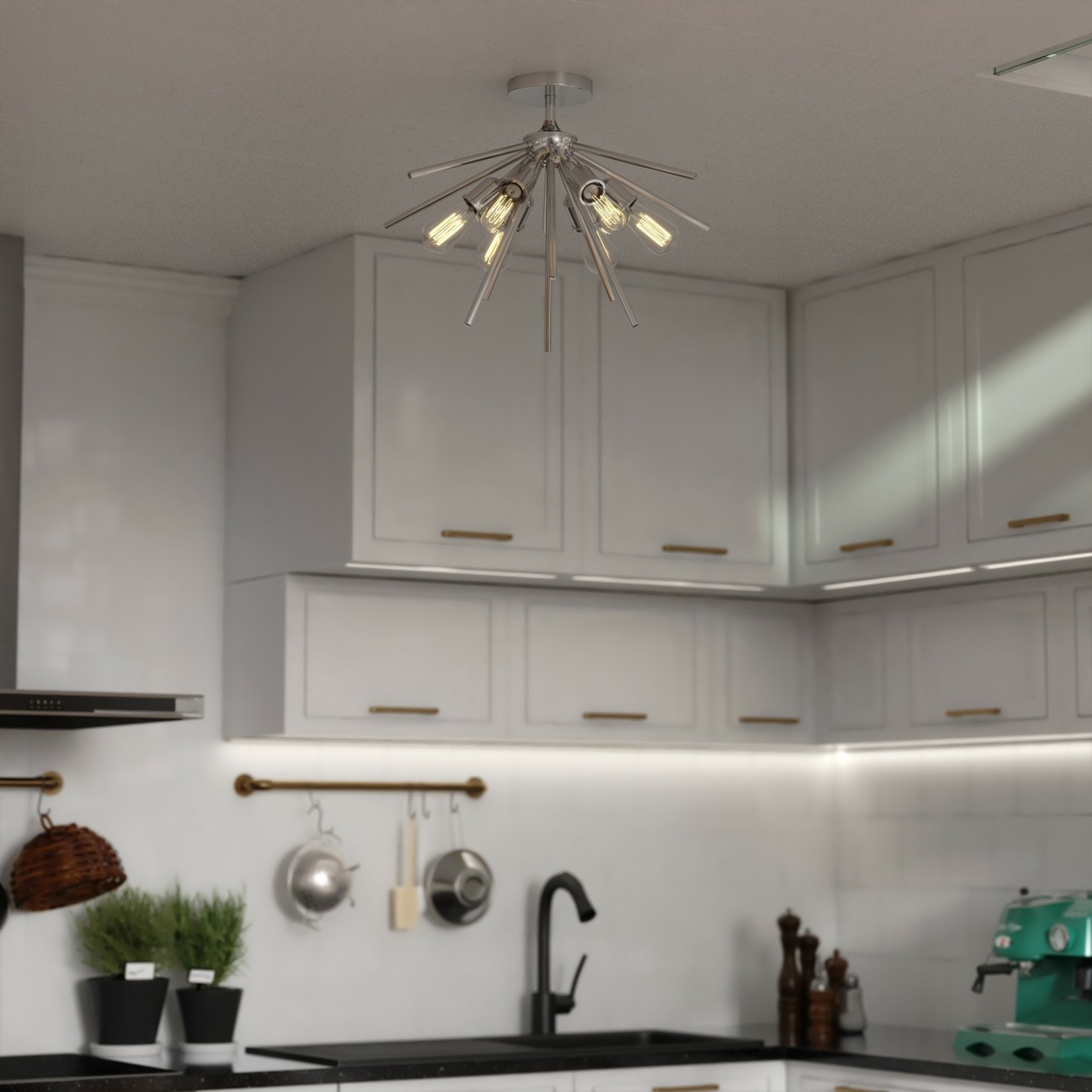 Mid-century meets modern in this timeless and uniquely artistic sputnik semi-flush ceiling light from the Estelle collection. Its perfectly balanced... Show more