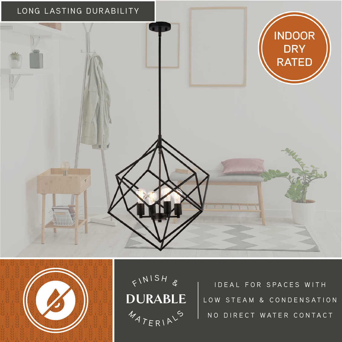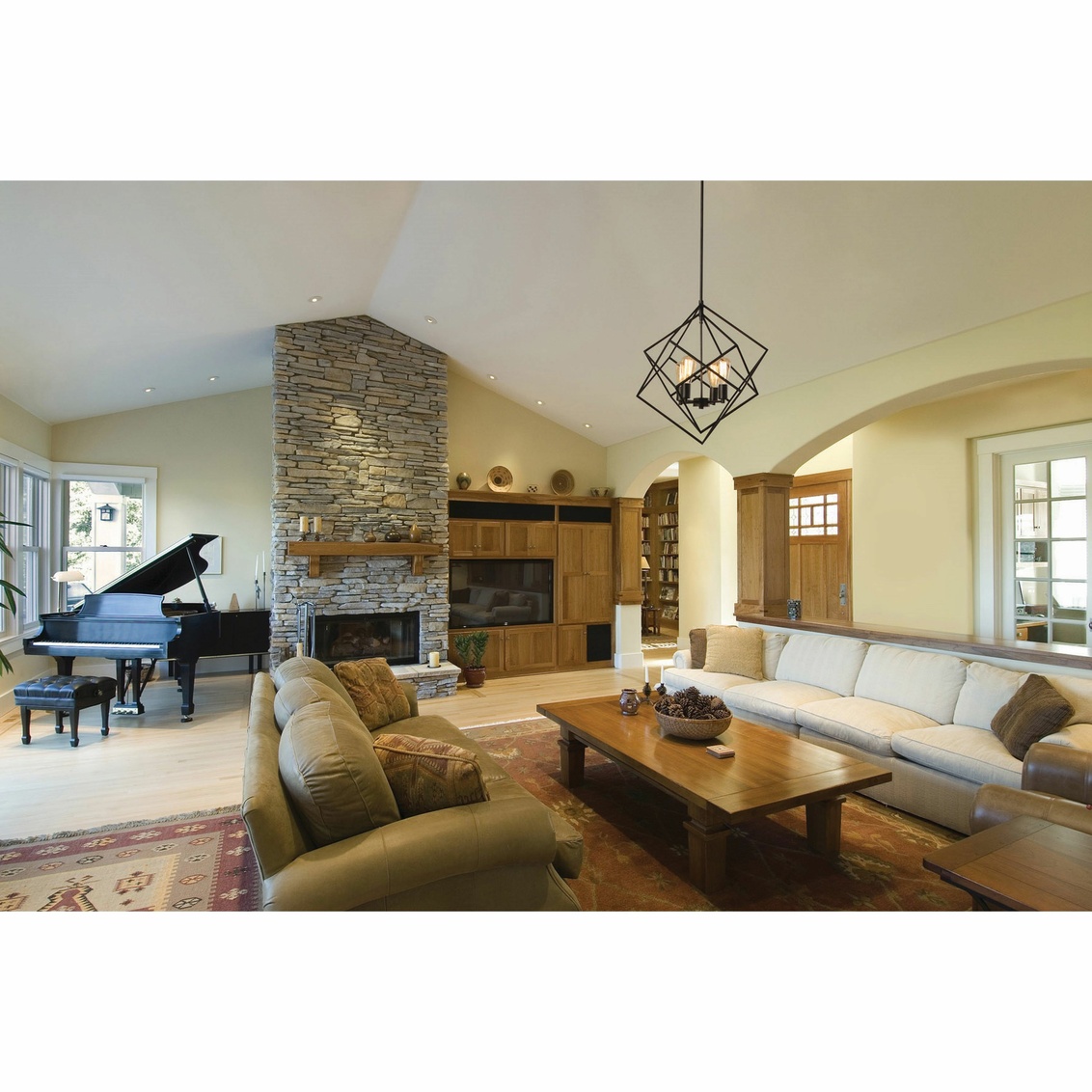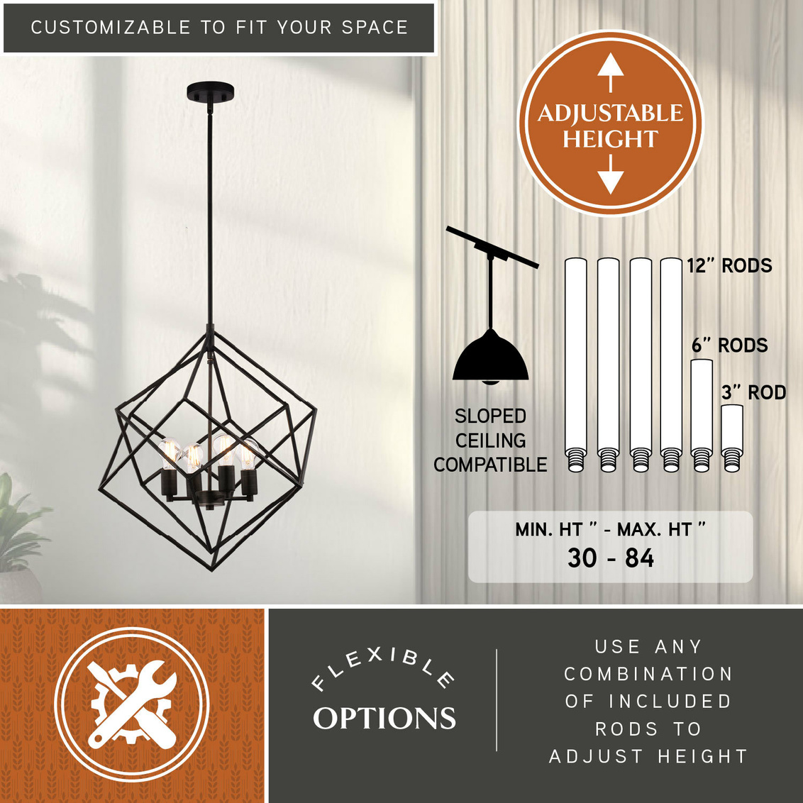 The Rad pendant features a bold geometric silhouette with an industrial inspired nested cube design that adds visual interest to the space. Finished in warm pewter, it delivers a modern yet timeless look that works well across a range of interior styles. Adjustable hanging height allows for flexible placement and compatibility with sloped ceilings. Ideal for dining rooms, living rooms, foyers, kitchens, or bedrooms, this pendant creates a striking focal point wherever it is installed.