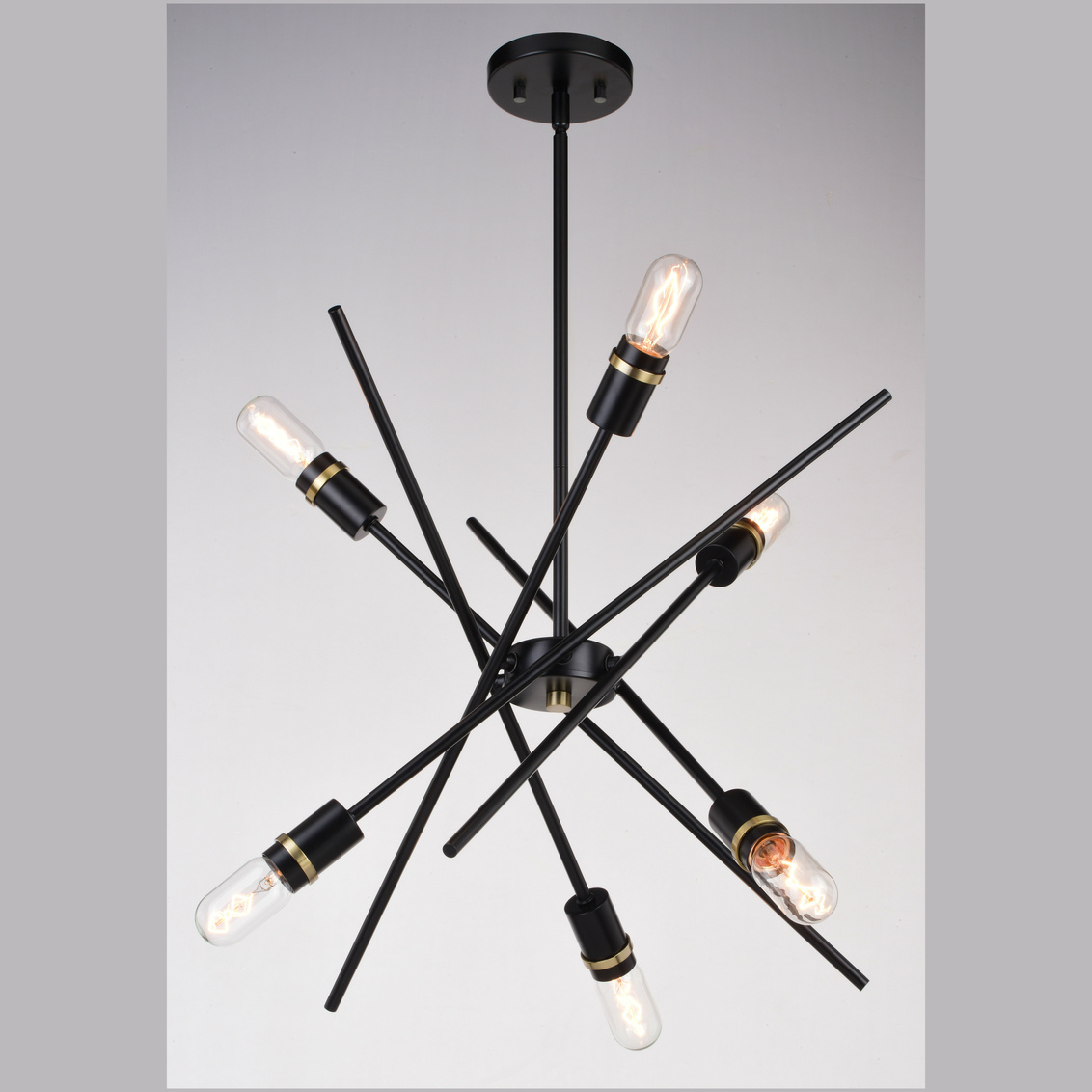 Halsted 24.25-in 6 Light Pendant Black and Satin Brass