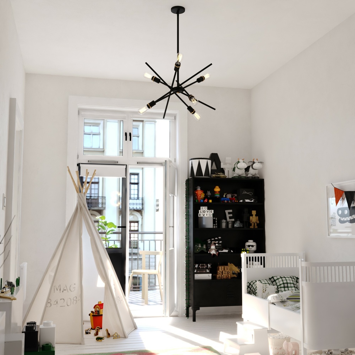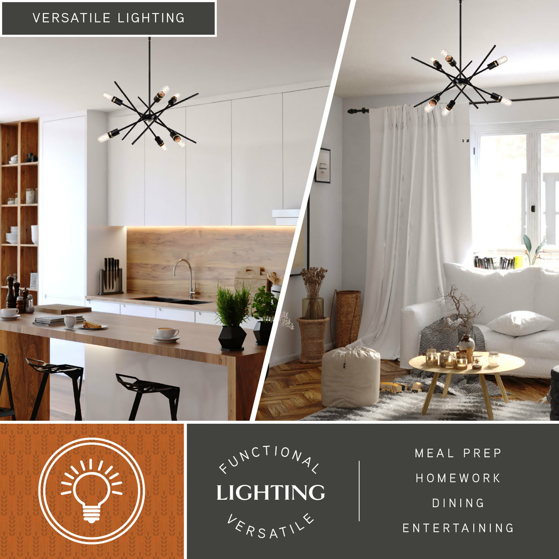 Keyword:Edison Filament Chandelier Light Pendant Black Brass Gold White Adjustable Angled Ceiling Sloped Vaulted Satin Down Rod Bar Area Bedroom Dining Room Entrance Entryway Family Indoor Interior Kitchen Island Steel Fixture Hanging Lighting Mount Table Contemporary MCM Mid-Century Modern