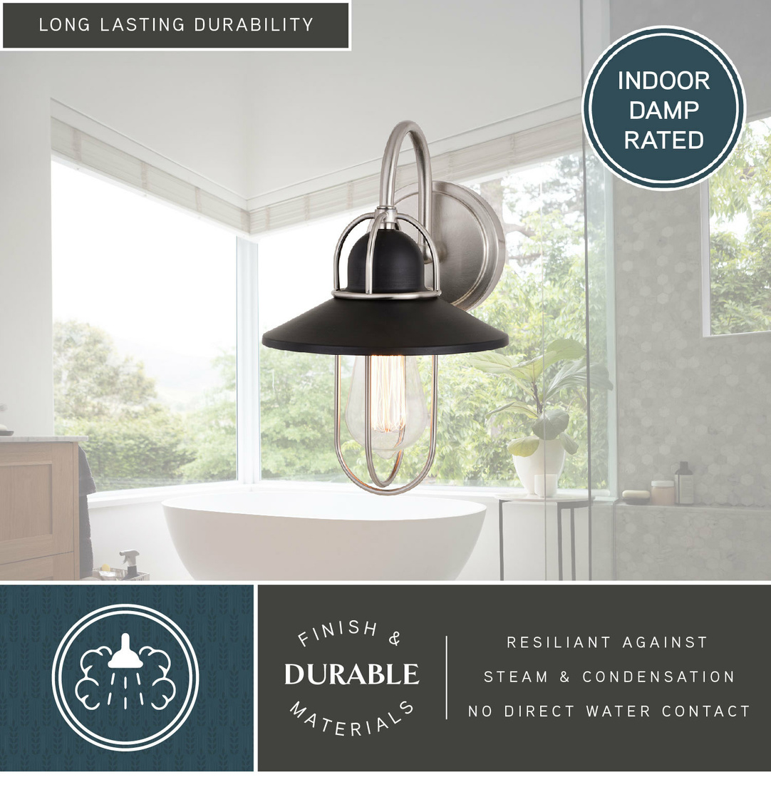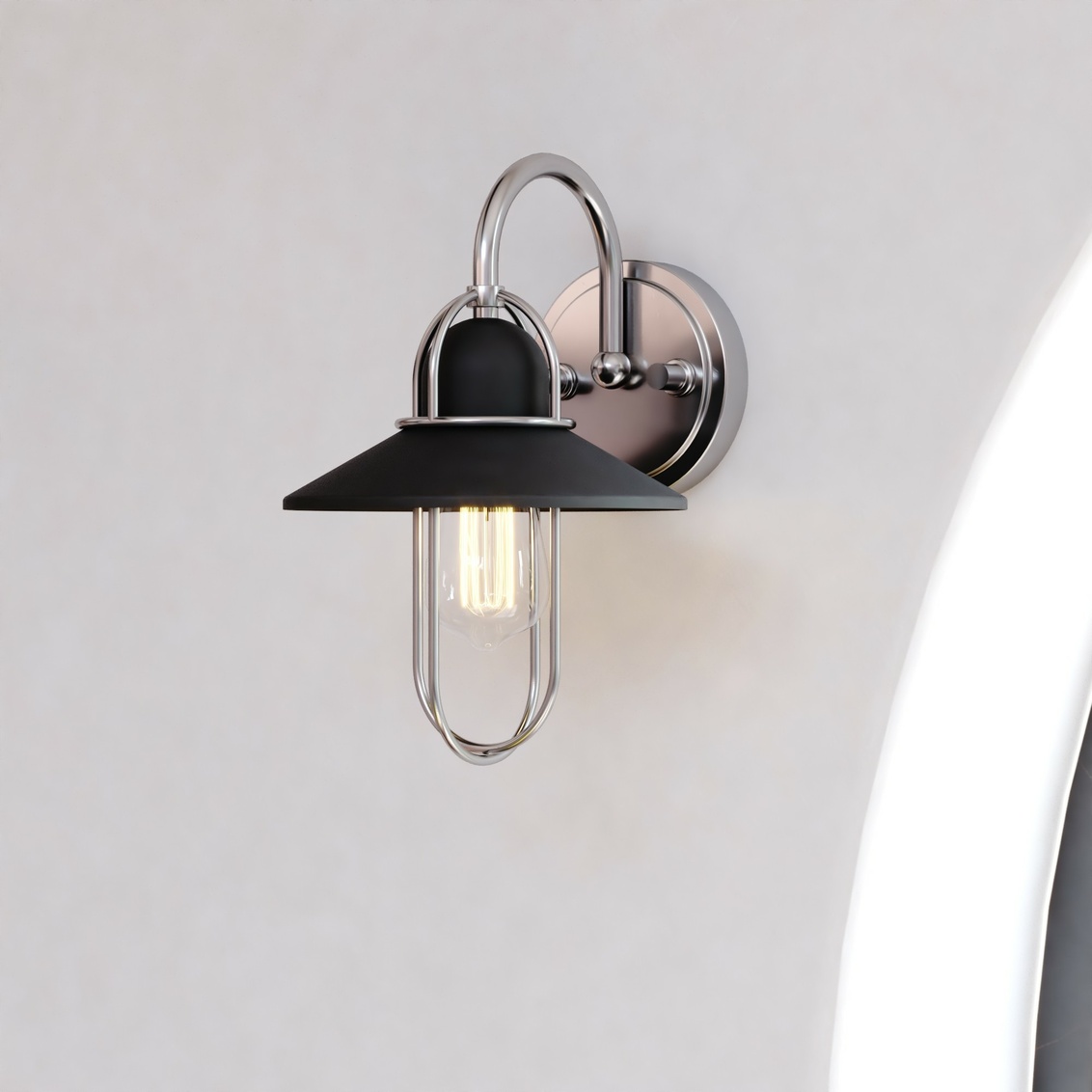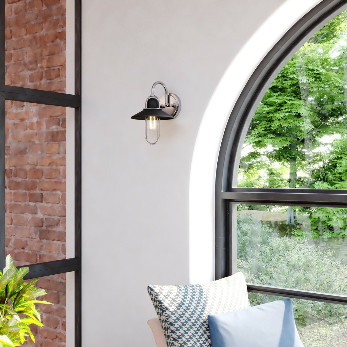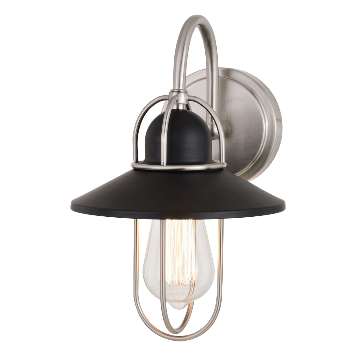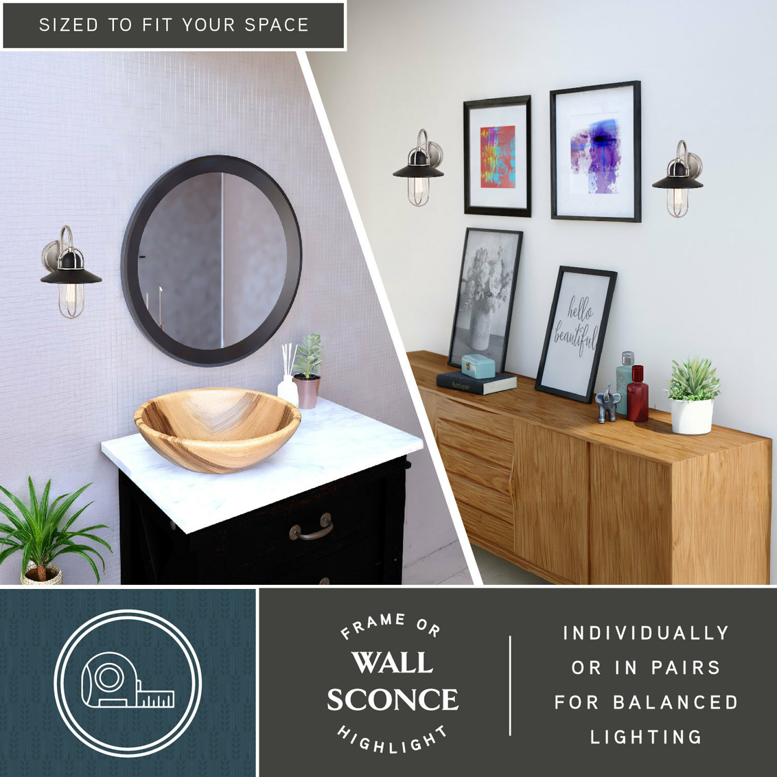 Coastal inspired style comes to life in the Galena wall light with a refined and distinctive presence. Cage like detailing evokes classic nautical design, finished in a balanced combination of matte black and satin nickel. The downward oriented shade directs light where it is needed most, creating a warm and functional glow. Ideal for bathrooms, bedrooms, hallways, or entryways, this fixture adds character and coastal charm to the space.